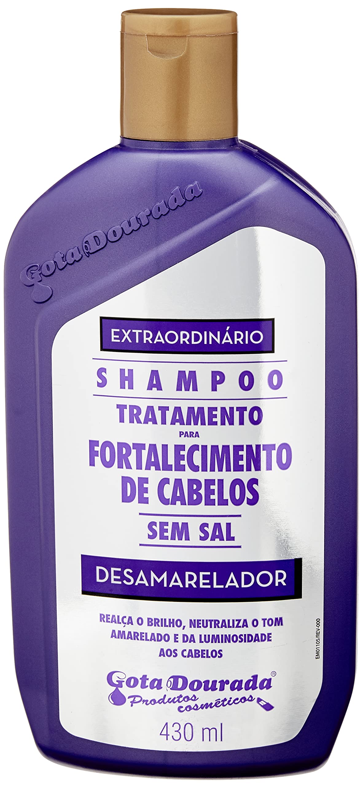 [WHAT IS] - Regular use product to neutralize oxidation in blonde hair [HAIR TYPE] - Blonde (natural or color-treated), highlighted, or gray hair [WHAT CONTAINS] - Blue-tinted lightening product with aloe extract. Salt-free (sodium chloride). Neutral. Eliminates yellowing, enhances platinum tone, deeply moisturizes, and provides exceptional shine. Strengthens the hair root and structure, combating breakage. [SUMMARY] - Strong, shiny hair with a beautiful platinum effect. [HOW TO USE] - Apply the shampoo to wet hair, from the scalp to the mid-lengths and ends, always in the direction of hair growth. Massage the scalp with your fingertips for 2 minutes. Rinse and repeat. It is recommended to follow with a hair mask and a medium-to-long conditioner for hydration and softness. For best results, combine this product with other products from the same range or brand. Frequency of use: This product is for daily use. INGREDIENTS Aqua, sodium laureth sulfate, cocamidopropyl betaine, cocamide TEA, potassium chloride, polyquaternium-7[RESULT] - Strong, shiny, and gorgeous platinum blonde hair. [What it does] - Neutralizes yellowing, enhances platinum shade, deeply moisturizes, and provides exceptional shine. Strengthens the hair root and structure, combating breakage. [What it contains] - Blue-tinted, powdered product with aloe vera extract, salt-free (sodium chloride-free). [HAIR TYPE] - Blonde (natural or color-treated), highlighted, or gray hair. [What it is] - A product for regular use to neutralize oxidation in blonde hair.Shampooing goutte DouraGota Dourada Shampooing Gota Dourada Matificateur Extraordinaire 430 mlDESCRIPTION DU PRODUIT DESCRIPTION DU PRODUIT [QU'EST] - Produit à usage régulier pour neutraliser l'oxydation des cheveux blonds [TYPE DE CHEVEUX] - Cheveux blonds (naturels ou colorés), méchés ou gris [QU'EST-CE QUE CONTIENT] - Produit éclaircissant de couleur bleue, avec extrait d'aloe, ne contient pas de sel (chlorure de sodium). Neutre. Élimine le jaunissement des cheveux, améliore la teinte platine, hydrate profondément et procure une brillance exceptionnelle. Renforce la racine et la structure capillaire en luttant contre la chute par rupture [Résumé] - Cheveux forts, brillants et très beaux effet platine [Méthode d'utilisation] - Appliquer le shampooing sur cheveux humides, sur le cuir chevelu et du milieu aux pointes, toujours dans le sens de la croissance des cheveux. Massez le cuir chevelu avec le bout des doigts pendant 2 minutes. Rincer et répéter l'opération. Il est recommandé de compléter le lavage avec l'utilisation d'un masque et d'un après-shampoing moyen à pointe, pour hydrater et douceur. Pour de meilleurs résultats, combiner l'utilisation du produit avec d'autres produits de la même gamme ou marque. Fréquence d'utilisation : produit pour un usage quotidien. INGRÉDIENTS Aqua, sodium laureth sulfate, cocamidopropylbetaine, cocamide tea, potassium chloride, polyquaternium-7[RÉSULTAT] - Cheveux forts, brillants et magnifiques effet platine. [Ce qu'il fait] - Neutralise le jaunissement des cheveux, améliore la teinte platine, hydrate profondément et offre une brillance exceptionnelle. Renforce la racine et la structure capillaire en luttant contre la chute par rupture. [Ce qu'il contient] - Produit démartelé de couleur bleue avec extrait d'aloès, sans sel (chlorure de sodium). [TYPE DE CHEVEUX] - Cheveux blonds (naturels ou colorés), méchés ou gris. [Qu'est-ce que c'est] - Produit à usage régulier pour neutraliser l'oxydation des cheveux blonds.