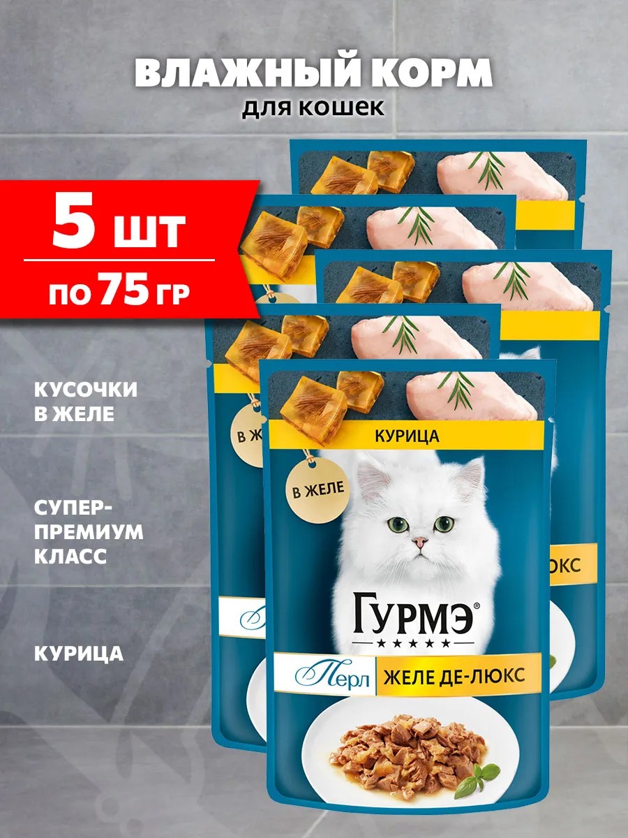 Корм влажный Перл Желе Де Люкс для кошек курица 75 г 5 шт