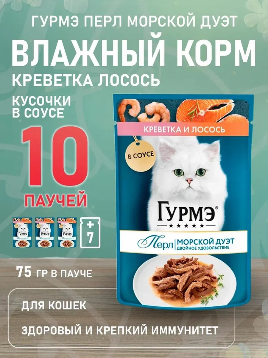 Корм влажный Перл Морской дуэт для кошек креветка 75 г 10 шт