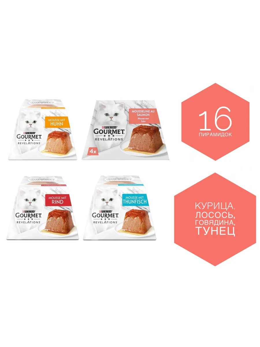 Этот корм для кошек имеет аппетитную текстуру и нежный вкус. Он поставляется в виде отдельных порций и представляет собой небольшие пирамидки из тонкого мусса, покрытого соусом.