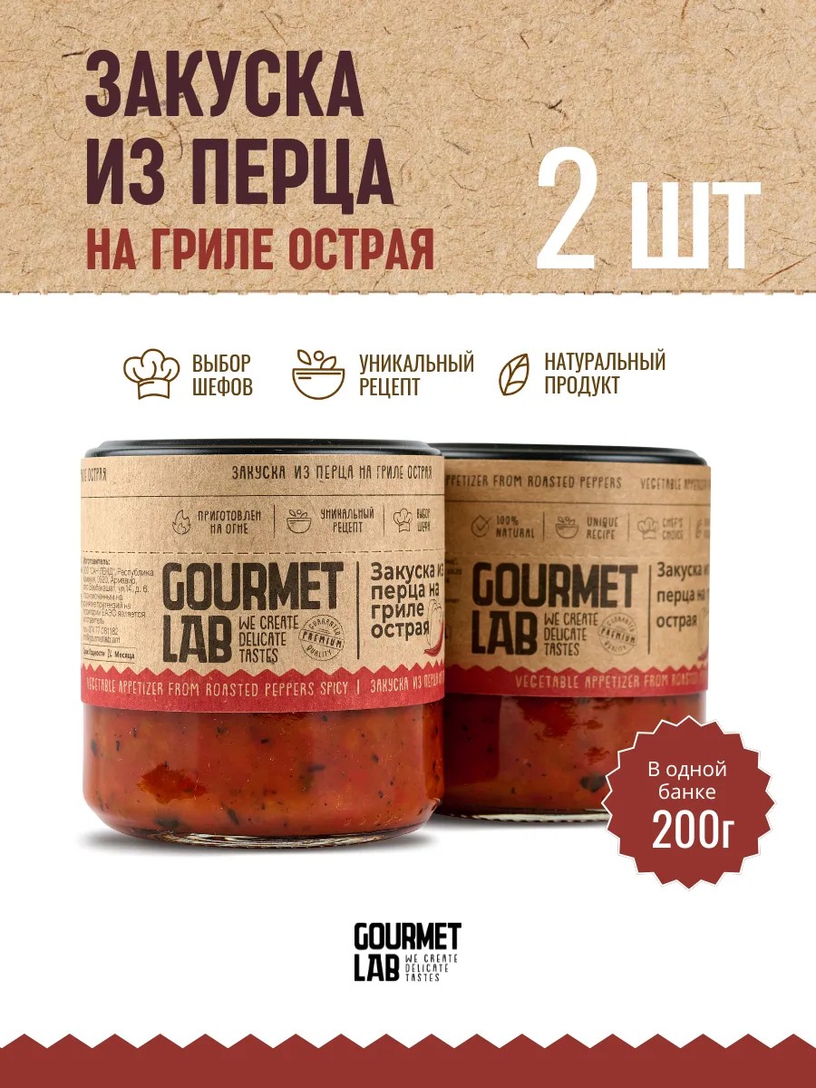 | Комплектация | Набор закуска перец на гриле Gourmet Lab острая, 2 шт по 200г |