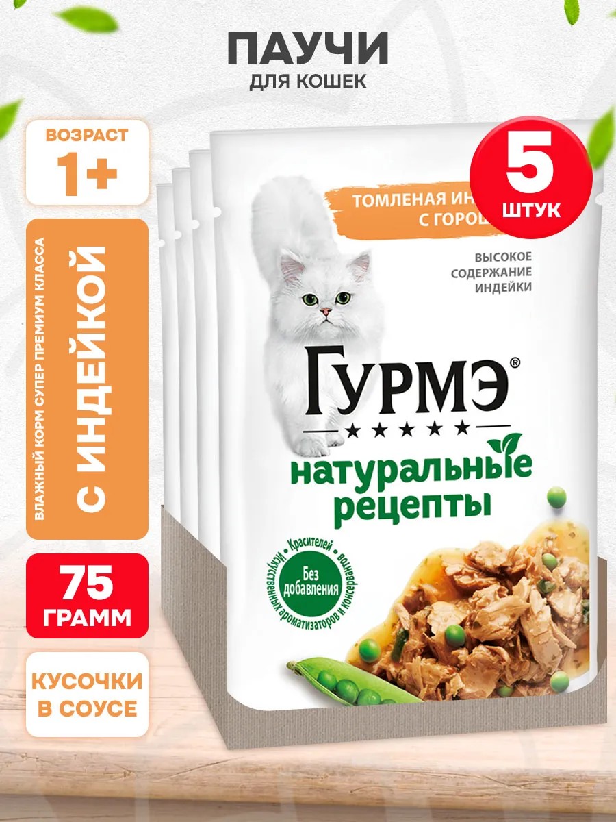Корм влажный Натуральные рецепты для кошек индейка 75 г 5 шт