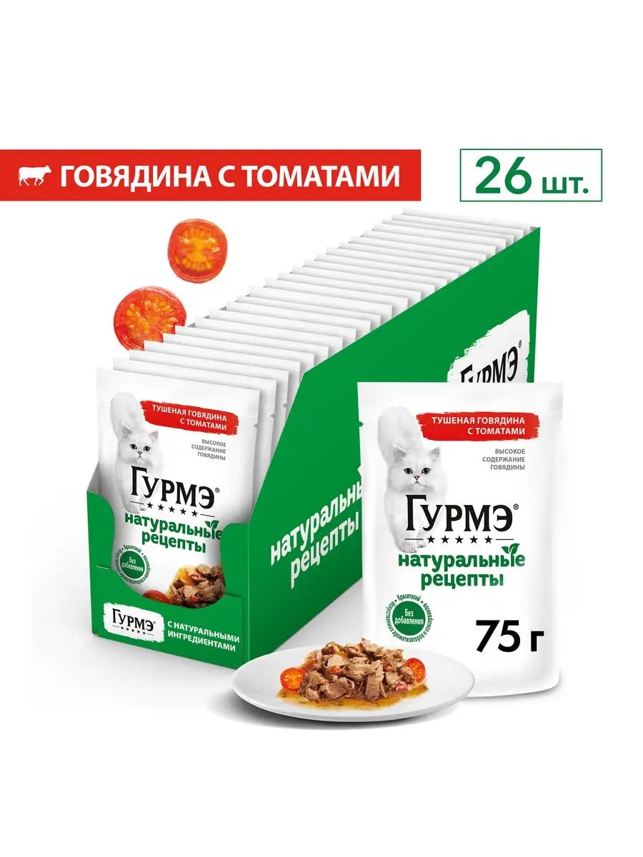 Гурмэ Влажный корм для кошек, говядина с томатами - 75 г х 26 шт