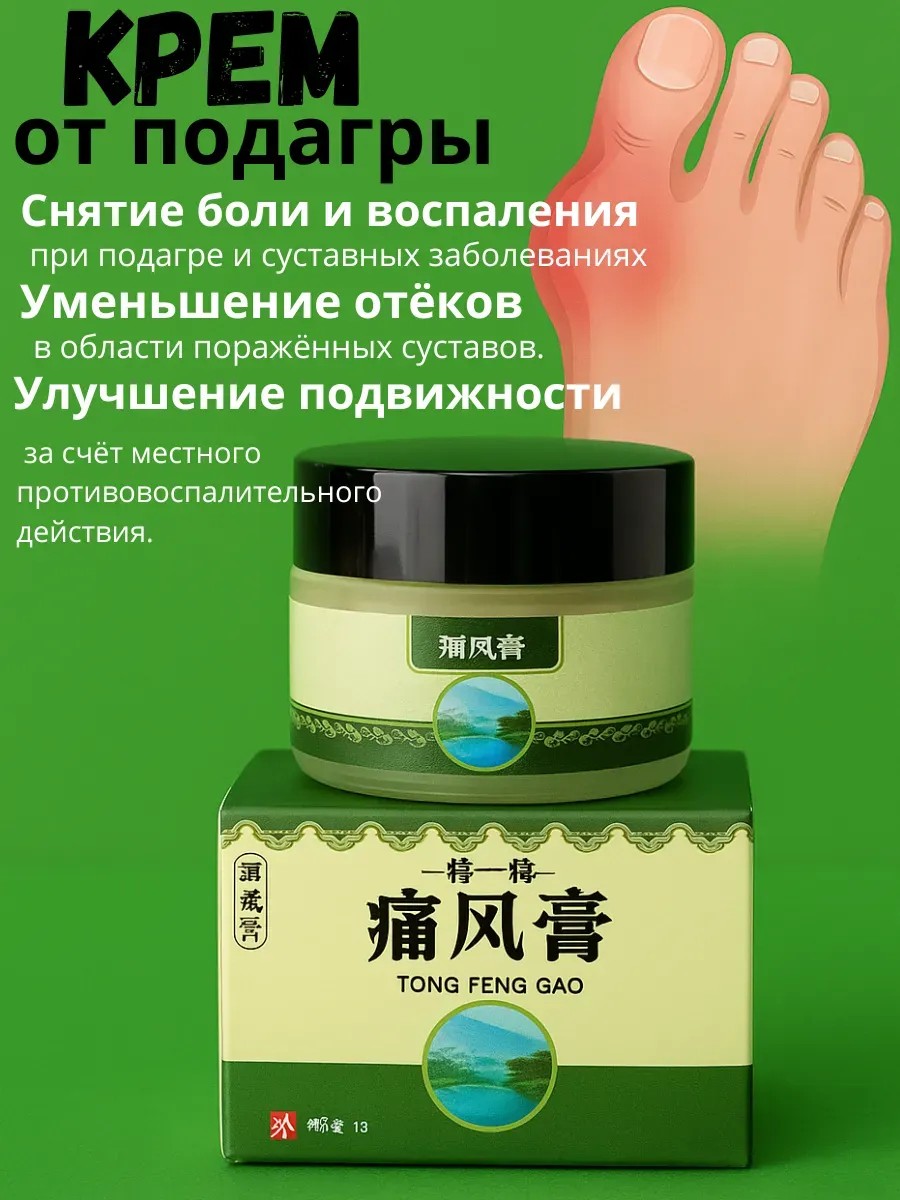Крем от подагры – это эффективное средство для борьбы с подагрой и ее симптомами. Применение этой мази от подагры на ногах помогает уменьшить воспаление и облегчить боль, благодаря тщательно подобранным активным ингредиентам. Мазь от подагры работает на основе принципов китайской медицины, где используются натуральные компоненты, способствующие восстановлению тканей и нормализации обмена веществ.