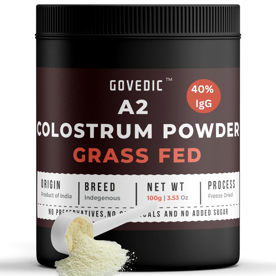 Govedic Grass-Fed Bovine Colostrum Powder for Daily Immune Gut Support Govedic Colostrum Powder Supplement is a high-potency, grass-fed bovine colostrum powder delivering 40 IgG to support immune health, digestive balance, and overall wellness. Carefully sourced from grass-fed cows and gently processed to help preserve its natural bioactive compounds, this unflavored powder fits seamlessly into your daily routine. Designed for Daily Wellness Simple to use — just one serving daily mixed into your favorite drink. Colostrum is nature's first nutrition — rich in immunoglobulins, growth factors, and essential nutrients that help support gut lining integrity, nutrient absorption, and recovery. Many adults choose colostrum as part of their wellness routine for digestive comfort, immune support, and active lifestyle recovery. Ethically Sourced Colostrum: At Govedic, calf nourishment always comes first. Each calf is fully fed before any excess colostrum is collected for human use, ensuring a responsible and ethical sourcing process that respects animal wellbeing. Our clean, simple formula contains no artificial flavors, fillers, or unnecessary additives. The neutral taste blends easily into water, smoothies, coffee, or shakes, making it effortless to add to your morning or post-workout routine. Why Choose Govedic Colostrum? ✓ Delivers 40 IgG to support immune and gut health ✓ Ethically sourced — calves are fully nourished before excess colostrum is collected ✓ Sourced from grass-fed bovine cows for purity and quality ✓ Supports digestion, nutrient absorption, and daily recovery ✓ Unflavored powder that mixes easily with your favorite drinks ✓ No artificial flavors, fillers, or added junk ✓ Designed for daily wellness in men and women Whether you're focused on digestive health, immune support, or overall vitality, Govedic Colostrum Powder offers a simple, natural way to support your body every day.UNFLAVORED EASY TO MIX DAILY: Neutral taste blends smoothly into water, smoothies, coffee, or shakes. Simple to add to your morning or post-workout routine with no chalky texture. GRASS-FED GENTLY FREEZE-DRIED: Sourced from grass-fed bovine cows and carefully freeze-dried to help preserve natural bioactive compounds. No artificial flavors, fillers, or unnecessary additives. ETHICALLY SOURCED – CALVES FED FIRST: Calf nourishment always comes first. Only excess colostrum is collected after calves are fully fed, ensuring responsible sourcing that respects animal wellbeing. WHOLE-BODY WELLNESS RECOVERY: Supports digestion, nutrient absorption, and natural recovery after workouts or everyday stress. Ideal for adults looking to support gut health, immunity, and active lifestyles. POWERFUL IMMUNE GUT SUPPORT: High-potency bovine colostrum powder supplement delivering 40 IgG to help support immune function, gut lining integrity, and digestive balance — designed for daily wellness in adults.