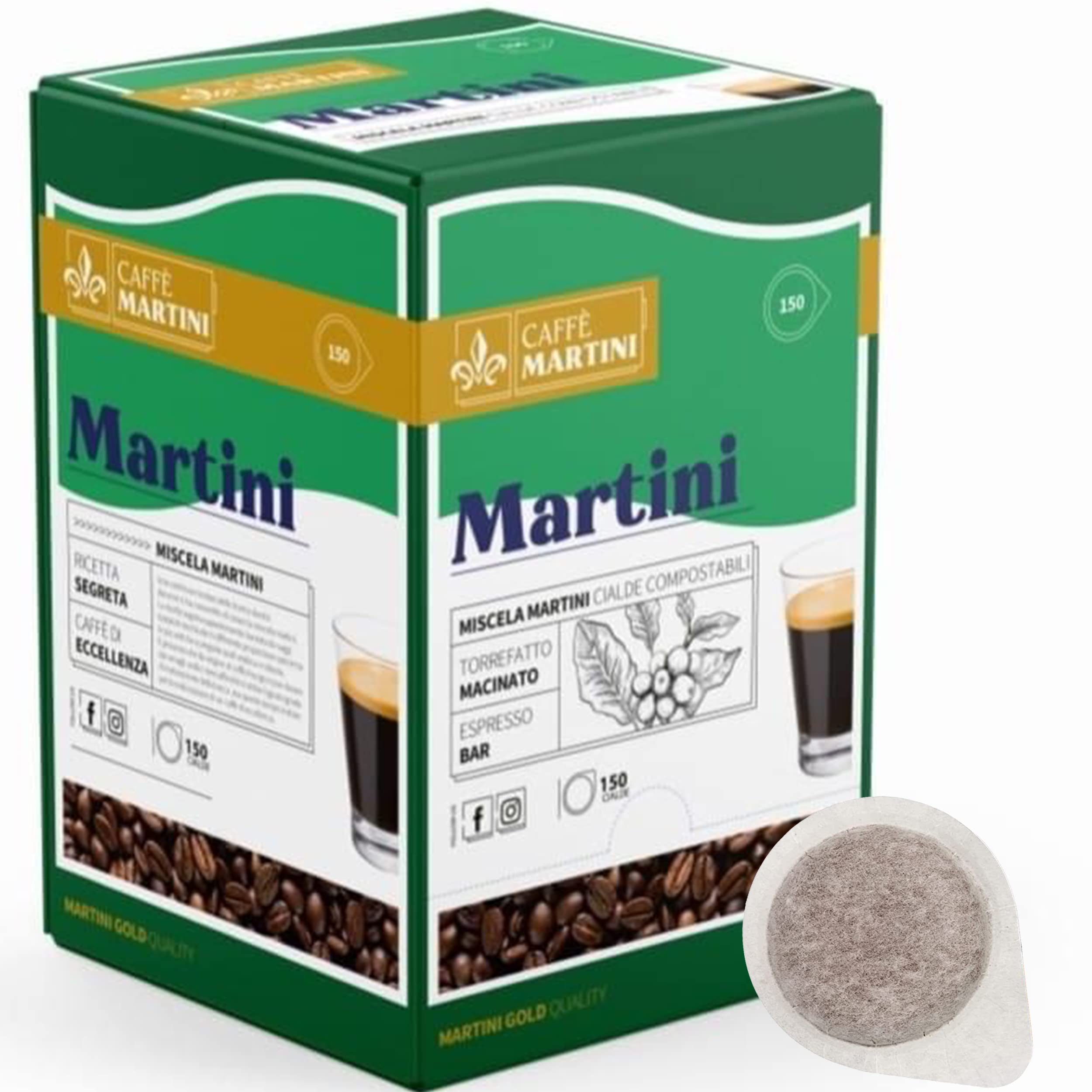 Café Martini Espresso Napoletano Artisanal Mélange vert 150 Gaufre compostable ESE 44-1125gr- Fabriqué en Naples
