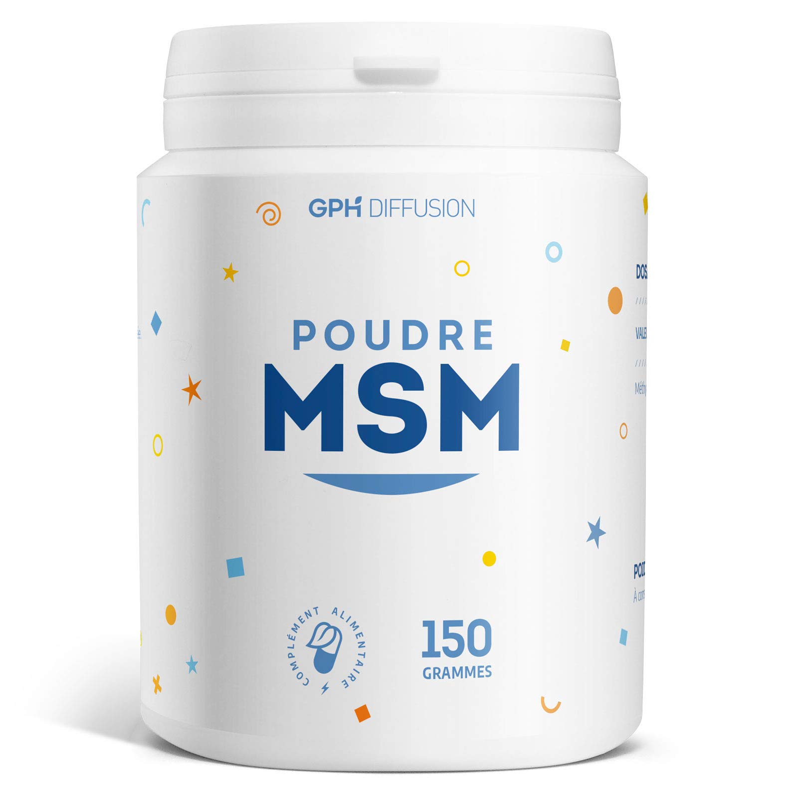 ? PACKAGING ¦ 150g box. ? MADE IN FRANCE ¦ GPH DIFFUSION is a French company, located in the Landes region. ? EASY TO USE ¦ One teaspoon per day dissolved in a large glass of water. ? MSM ¦ Methylsulfonate is a sulfur-based trace element.