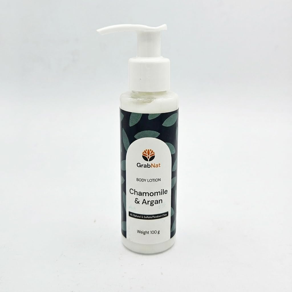 Pamper your skin with the Chamomile Argan Body Lotion, a luxurious, all-natural moisturizer crafted to combat extreme dryness and restore lasting softness. Ideal for women and men, this gentle formula blends chamomile oil's calming properties with argan oil's deep nourishment to transform dry, rough patches into supple, velvety skin. Enriched with olive flower water and sweet almond oil, our lotion delivers intense hydration without heaviness. The fast-absorbing texture melts into skin, providing immediate relief from tightness and flakiness while reinforcing the skin's moisture barrier. Chamomile oil soothes irritation, while argan oil's vitamins replenish and protect against environmental stressors. Designed for daily use, this sulfate-free and paraben-free lotion is safe for sensitive skin. Its clean, plant-powered formula avoids harsh chemicals, relying on nature's best to soften, smooth, and revitalize. Apply liberally to hands, elbows, knees, or anywhere skin feels parched for a soothing, non-greasy finish. Key Benefits: - Delivers 24-hour hydration to extremely dry skin. - Soothes roughness with chamomile and argan oils. - Lightweight, gender-neutral formula perfect for daily use. Ingredients: Distilled Herbal Water, Olive Flower Water, Olive Fruit Oil, Chamomile Oil, Argan Oil, Sweet Almond Oil, Stearyl Alcohol, Stearic Acid, Phenoxyethanol (preservative). How to Use: Massage a generous amount onto clean, dry skin daily. Focus on dry areas like elbows, knees, and hands for optimal hydration. Note: For external use only. Discontinue use if irritation occurs. Avoid contact with eyes. Not evaluated to treat or cure medical conditions.Clean,All-Natural Ingredients: Sulfate-free, paraben-free, and formulated with olive flower water and sweet almond oil for gentle care. Crafted for All Genders: Gentle enough for women and men, ideal for sensitive or dehydrated skin. Lightweight, Non-Greasy Formula: Absorbs quickly without residue, leaving skin velvety-soft and comfortable all day. Soothing Chamomile Nourishing Argan: Soothes irritation and replenishes moisture with antioxidant-rich chamomile oil and vitamin-packed argan oil. Intense Moisture for Extremely Dry Skin: Deeply hydrates and repairs rough, flaky skin with nourishing botanical oils.