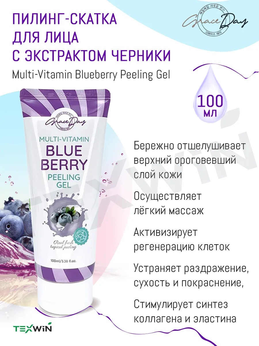 Multi-Vitamin Blueberry Peeling Gel, a facial peeling gel with blueberry extract, contains panthenol, allantoin, arginine, vitamins C and E, and extracts of sugarcane and salicornia.