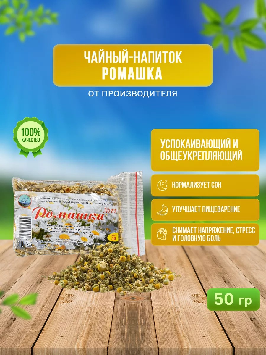 Благодать с Алтая Ромашка цветки сушеные травяной сбор для чая