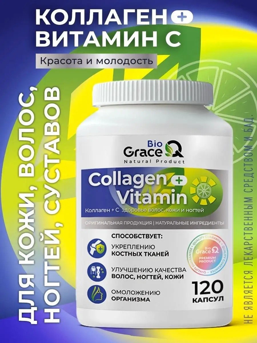 Концентрат пищевой "Коллаген + Витамин С GraceBioQ" (Collagen + Vitamin C GraceBioQ). Не является лекарственным средством и БАД.