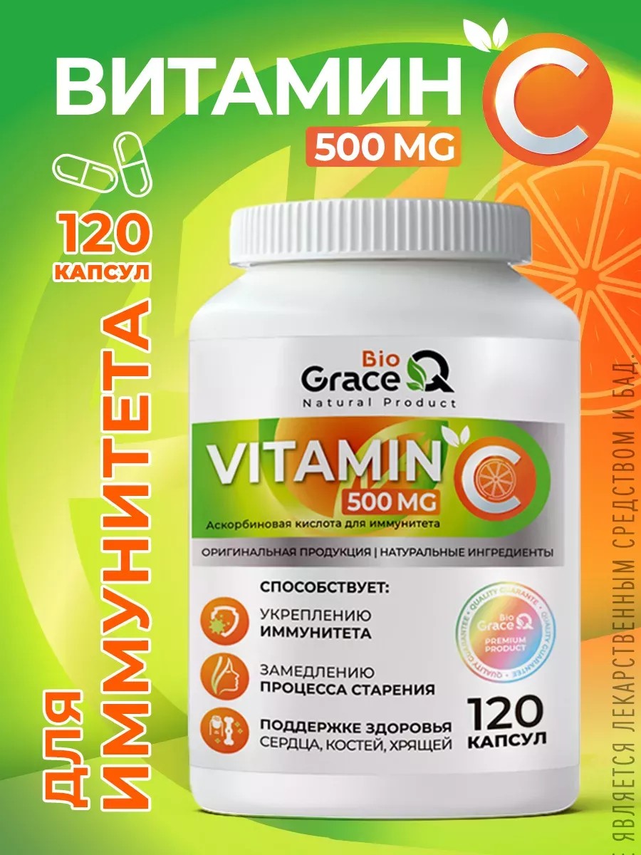 GraceBioQ Витамин С 500 мг для иммунитета. Аскорбиновая кислота.