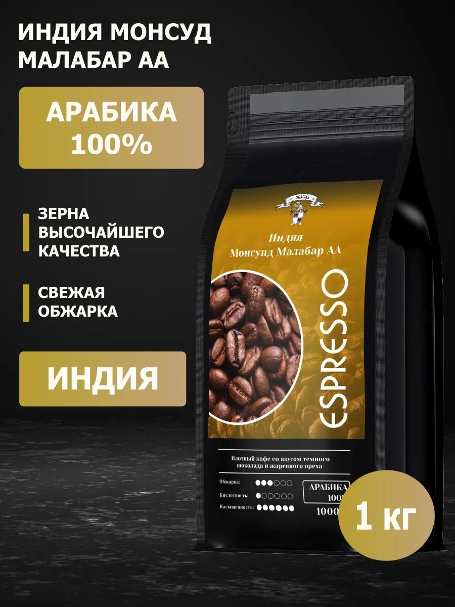 Кофе в зернах Индия Монсунд Малабар АА Арабика 1 кг
