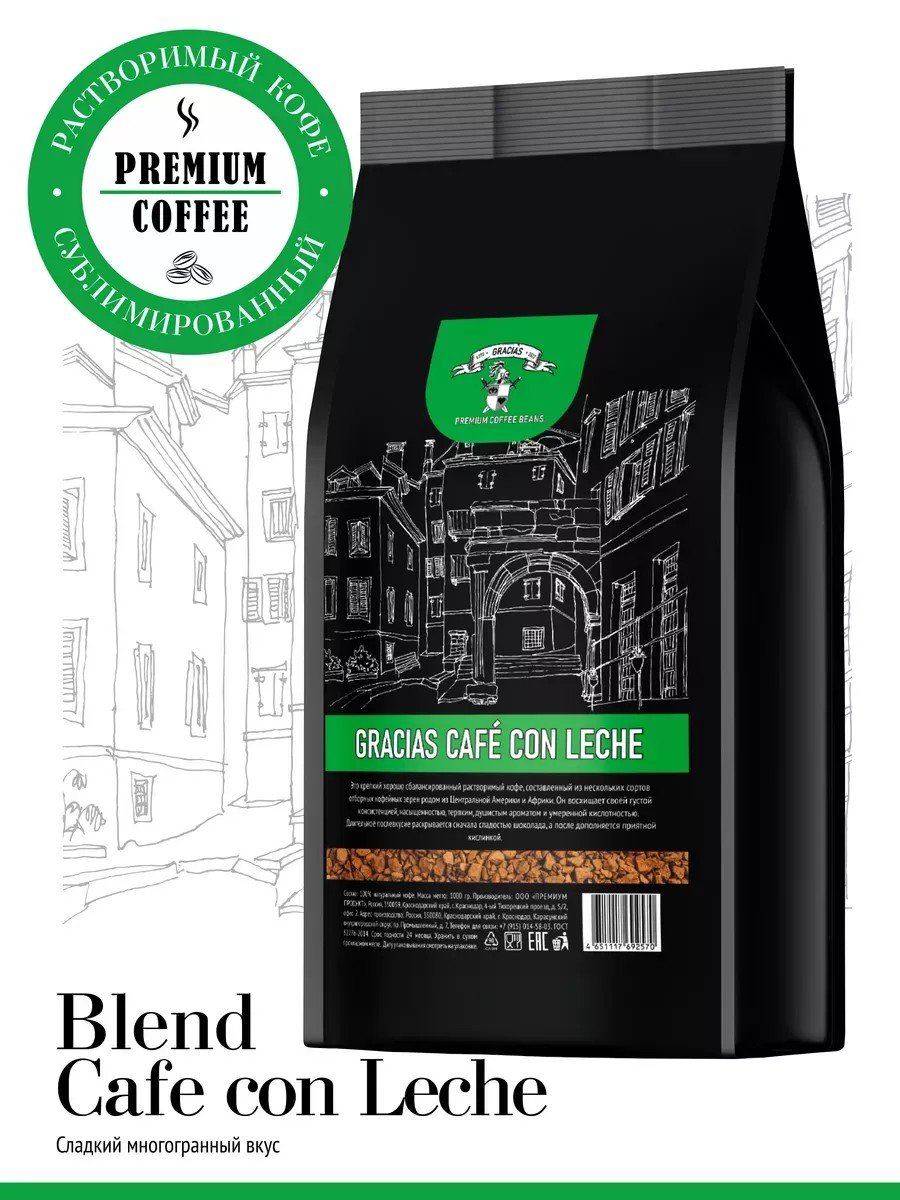 GRACIAS coffee Кофе растворимый 1 кг Gracias Cafe con leche сублимированный