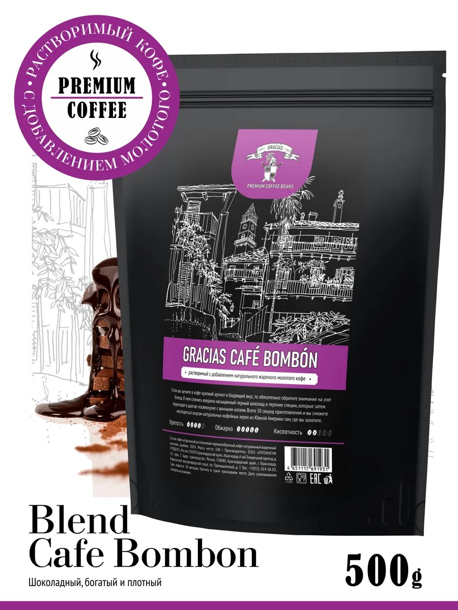 Кофе растворимый 500гр с добавлением молотого Cafе bombоn