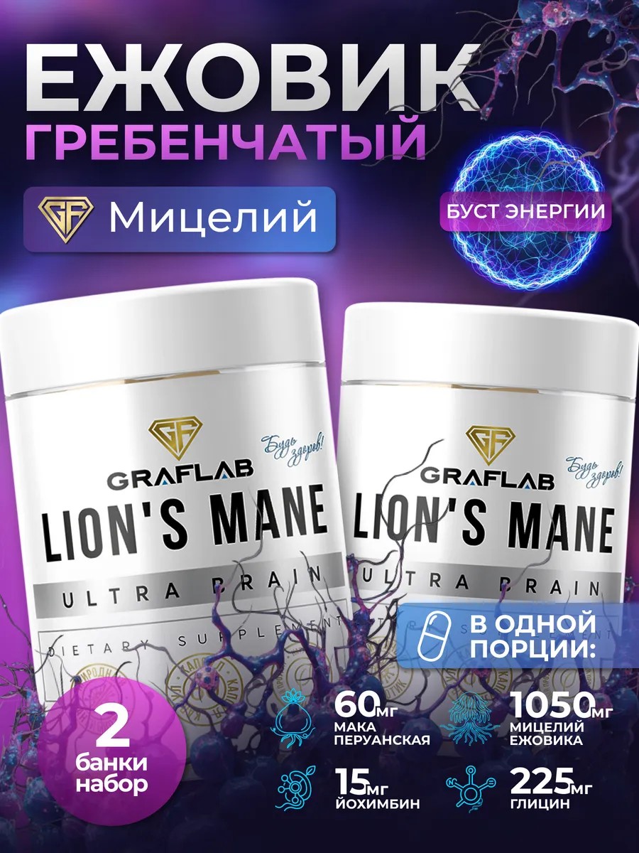 GraFLab Ежовик гребенчатый капсулы грибы ноотроп для мозга