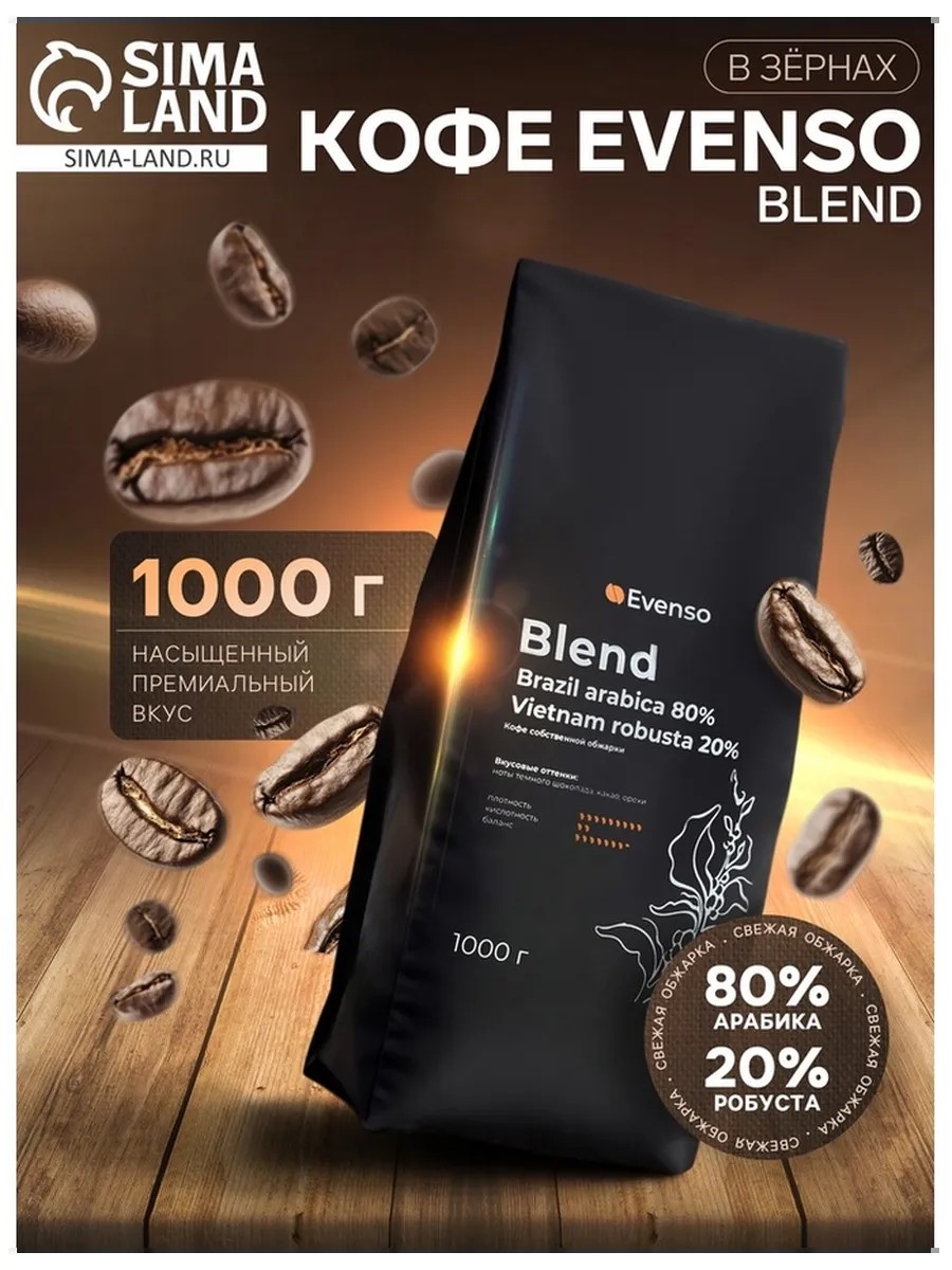 Кофе зерновой Evenso бленд 80/20, 1 кг