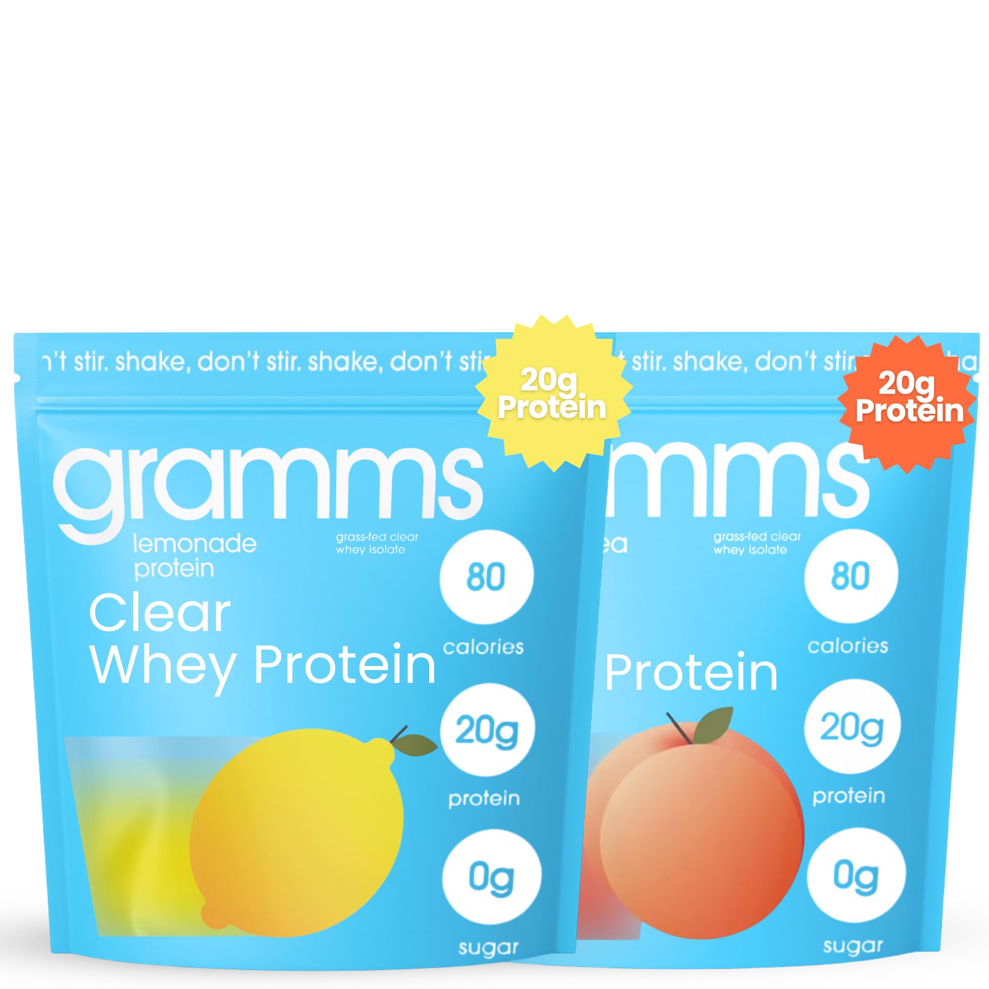 GRAMMS Clear Protein Powder 20G Protein for Women & Men | Grass-Fed Whey Isolate, Zero Sugar, Zero Lactose, Non-Bloating, Non-GMO