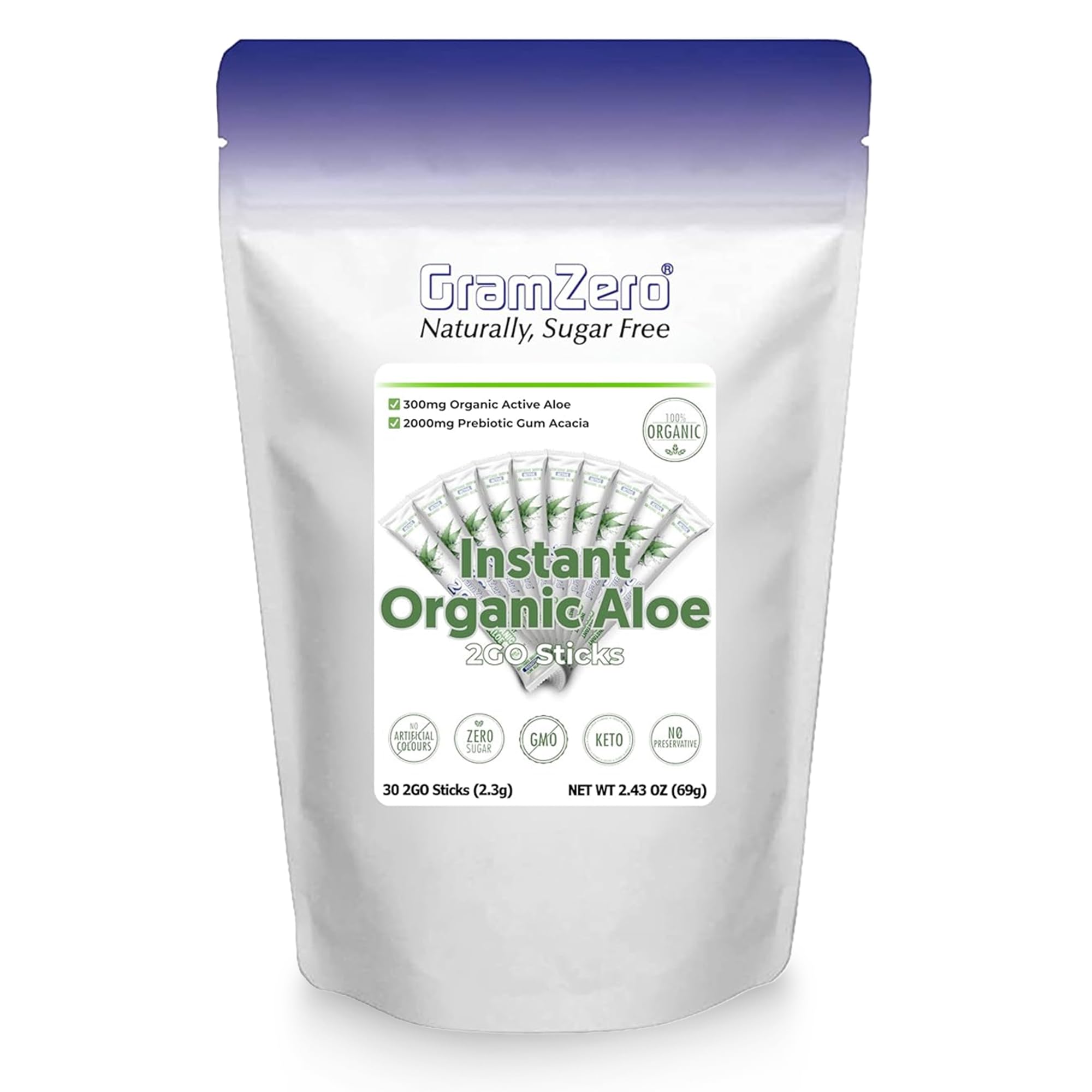 GramZero 2GO Sticks - Organic Aloe: Unflavored Great for Nutrition Club Loaded Tea Aloe Unflavored