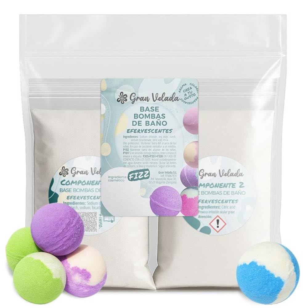 Fizzing Bath Bombs The base for fizzy bath bombs is a powdered base composed of two components. It will be very easy for you to make your own fizzy bath bombs. These are the ingredients it contains: sodium chloride, zea mays starch, sodium bicarbonate, citric acid, mica. With 1 kg of base and the ingredients we suggest below, you can make 24 fizzy bath bombs approximately 4 cm in diameter. Choosing the fragrance and coloring will allow you to give your fizzy bath bombs the scent and color you like. This is one of the advantages of making them at home. Bath Bomb Ingredients In addition to this base, what ingredients do you need to make fizzy bath bombs at home? Note: Coconut oil (65 g) Fragrance essence (30 ml) Liquid bath bomb color or soap pigment powder Witch hazel water (25 ml) 96 alcohol (25 ml) Spray bottle Mold These quantities are for working with one kilogram of bath bomb base. If you are buying more base, you will need to calculate the proportion of each ingredient. The witch hazel water and 96 alcohol are mixed in equal parts in the spray bottle to moisten the paste if necessary. Here is how to make bath bombs with this base, step by step: 1. Sift component 1 of the bath bomb base and add 65 g coconut oil and 30 ml fragrance essence. Note: The coconut oil must be liquid. If it is solid, heat it for a few minutes in a double boiler. 2. Add a few drops of liquid bath bomb color to taste. 3. Add component 2 of the bath bomb base and knead the mixture well until all the ingredients are fully incorporated. Remember to wear gloves. 4. Spray the dough 3 to 4 times with a mixture of witch hazel water and 50 96 alcohol. This will prevent the mixture from drying out. 5. The dough is ready to mold. Recommendation: The easiest molds to use are PVC molds. Fill both halves of the mold, join them, and twist them in opposite directions while pressing down. You'll see how easily it molds. The bath bombs won't break during molding thanks to the base formula. No cracks or imperfections. Don't miss out! Tip: If the two halves don't stick together, it's because the dough isn't wet enough. In this case, spray with a mixture of 96 alcohol and witch hazel to make it more moist. Where can you buy basic bath bombs? Visit www.granvelada.com to buy basic bath bombs and all the other necessary products. All in one click. Fast delivery. Various payment methods.Powder base for making perfect fizzy bath bombs. This base will give you the optimal results you're looking for. The fizzy bath bomb base consists of two components that you must mix at the beginning of the recipe. What other ingredients do you need to make fizzy bath bombs? Coconut oil, fragrance oil, coloring. With this base, you can make personalized bath bombs with your favorite scents and colors. And best of all, made by you! All the details are below. With 1 kg, you will get approximately 24 bath bombs, each 4 cm in diameter. Cosmetic ingredient. Do not ingest. For professional use only.Base bombes de bain effervescentes 1000 gDESCRIPTION DU PRODUIT Bombes de bain effervescentes La base des bombes de bain effervescentes est une base en poudre composée de deux composants. Il vous sera très facile de fabriquer vos propres bombes de bain effervescentes. Ce sont les ingrédients qu'il contient : sodium chloride, zea mays starch, sodium bicarbonate, citric acid, mica. Avec 1 kg de base et les ingrédients que nous vous proposons ci-dessous, vous pouvez faire 24 bombes de bain effervescentes d'environ 4 cm. de diamètre. Choisir l'essence aromatique et le colorant vous permettra à vos bombes de bain effervescentes d'avoir le parfum et la couleur que vous aimez. C'est l'un des avantages de les faire à la maison. Bombes de bain ingrédients En plus de cette base, quels ingrédients avez-vous besoin pour fabriquer des bombes de bain effervescentes à la maison ? Remarque : huile de coco (65 g) Essence aromatique (30 ml) Colorant liquide pour bombes de bain ou poudre de pigment pour savon Eau d'hamamélis (25 ml) Alcool 96º (25 ml) Flacon pulvérisateur Moule Ces quantités sont indiquées pour travailler avec un kilo de base de bombes de bain effervescentes. Si vous achetez plus de base, vous devez calculer la proportion de chacun des ingrédients. L'eau d'hamamélis et l'alcool à 96 sont mélangés à parts égales dans le flacon pulvérisateur pour humidifier la pâte si nécessaire. Voici étape par étape comment fabriquer des bombes de bain effervescentes avec cette base : 1. Tamisez le composant 1 de la base des bombes de bain effervescentes et ajoutez 65 g. Huile de coco et 30 ml. Essence aromatique. Remarque : L'huile de coco doit être liquide. Si elle est solide, chauffez-la quelques minutes au bain-marie. 2. Ajoutez quelques gouttes de colorant liquide pour bombes de bain au goût. 3. Ajoutez le composant 2 de la base des bombes de bain effervescentes et pétrissez bien le mélange jusqu'à ce que tous les ingrédients soient parfaitement intégrés. N'oubliez pas de porter des gants. 4. Pulvérisez 3 à 4 fois la pâte avec un mélange à base d'eau d'hamamélis et d'alcool à 96º à 50 . Cela empêchera le mélange de sécher. 5. La pâte est prête à mouler. Recommandation : les moules les plus faciles à utiliser sont les moules en PVC. Remplissez les deux moitiés du moule, assemblez-les et tournez-les dans le sens opposé tout en appuyant dessus. Vous verrez combien il se moule facilement. Les boules ne se cassent pas lors du moulage grâce à la formule de base. Pas de fissures ou d'imperfections. À ne pas manquer ! Astuce : Si les deux moitiés ne collent pas, c'est parce que la pâte n'est pas assez humide. Dans ce cas, vaporisez avec le mélange d'alcool à 96º et d'eau d'hamamélis pour le rendre plus humide. Où acheter des bombes de bain effervescentes de base ? Accédez à www.granvelada.com pour acheter des bombes de bain effervescentes de base et tous les autres produits nécessaires. Le tout en un seul clic. Livraiso