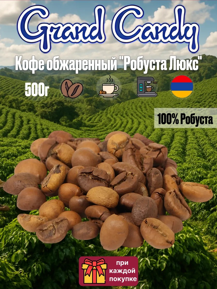 Grand Candy Кофе в зернах Кофе робуста обжаренный "Робуста Люкс" 500г