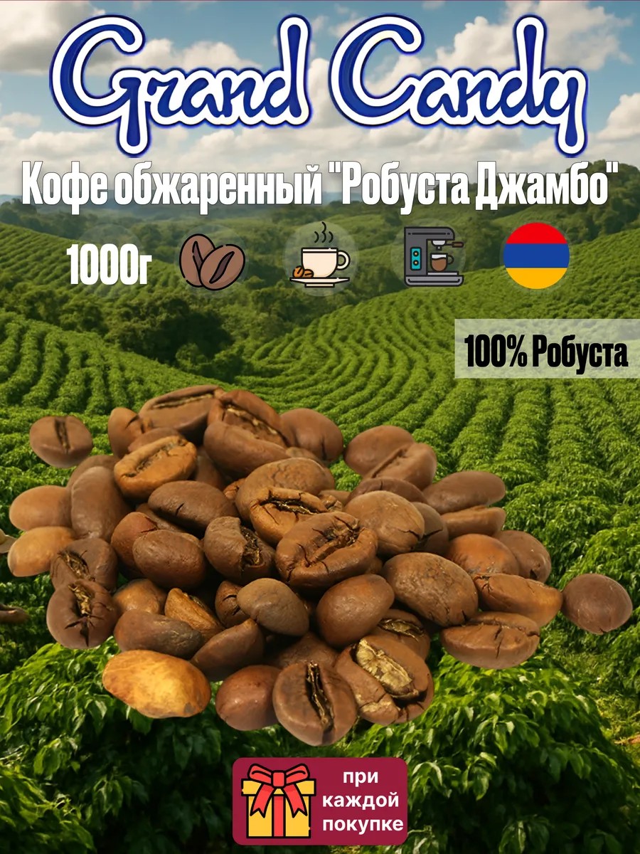 Grand Candy Кофе в зернах Кофе робуста обжаренный "Робуста Джамбо" 1 кг
