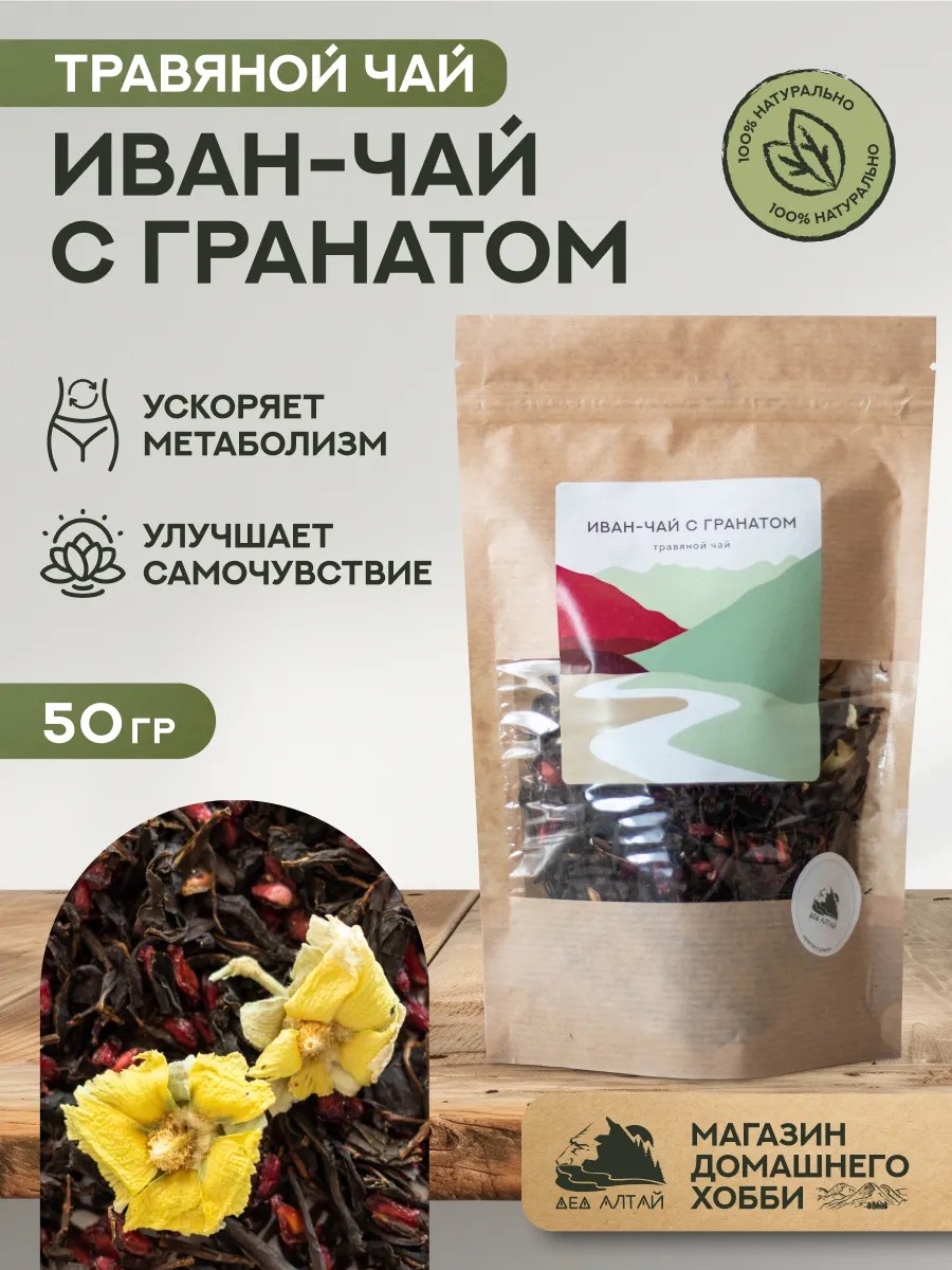 Herbal tea "Ivan-chai with pomegranate" from the Ded Altay brand is a unique combination of natural ingredients that have been carefully selected to create this environmentally friendly and healthy drink.