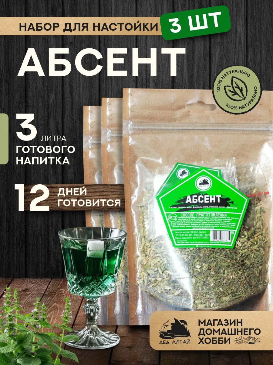 Дед Алтай Набор для приготовления настойки Абсент 3 шт