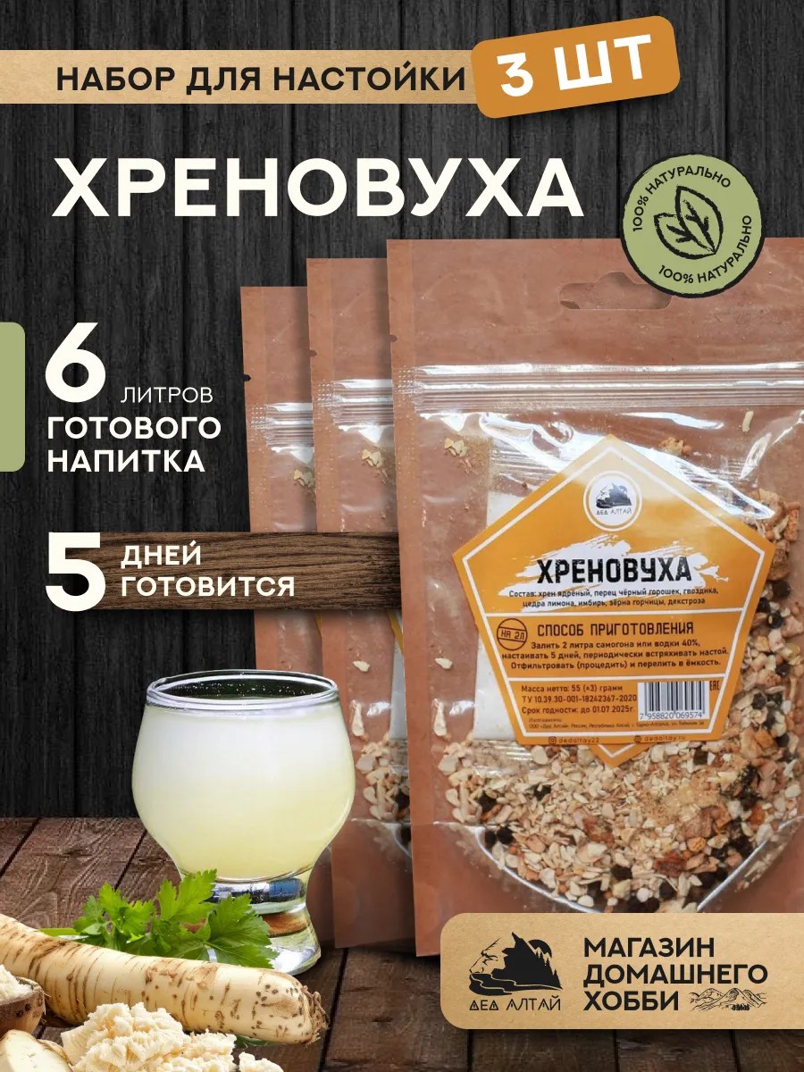 Дед Алтай Набор для приготовления настойки Хреновуха 3 шт