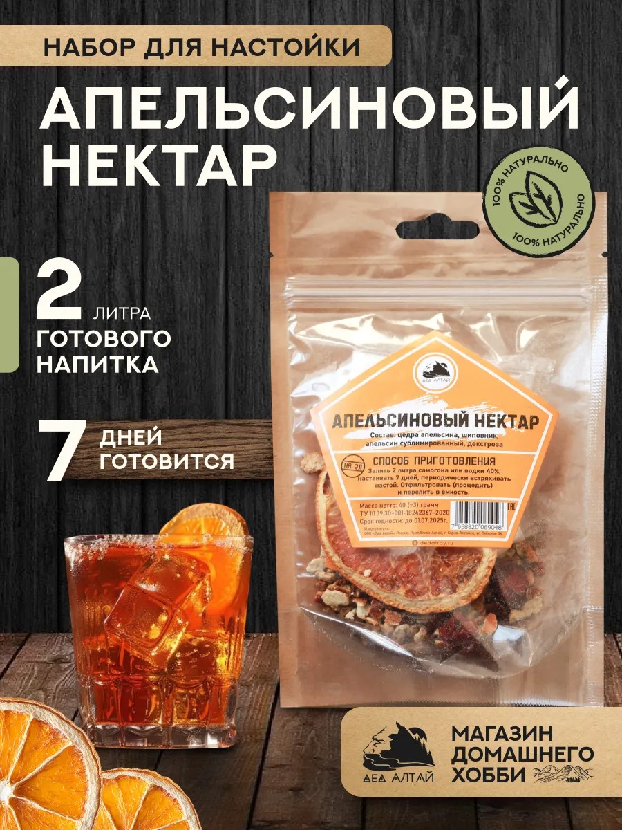 Набор для приготовления настойки "Апельсиновый нектар" от "Дед Алтай" — это ваш шанс создать уникальный напиток с ярким цитрусовым вкусом. В состав набора входят натуральные ингредиенты, собранные в экологически чистом Горном Алтае: цедра апельсина, шиповник и декстроза. Этот набор позволит вам легко и просто приготовить ароматную настойку, которая станет украшением любого стола.