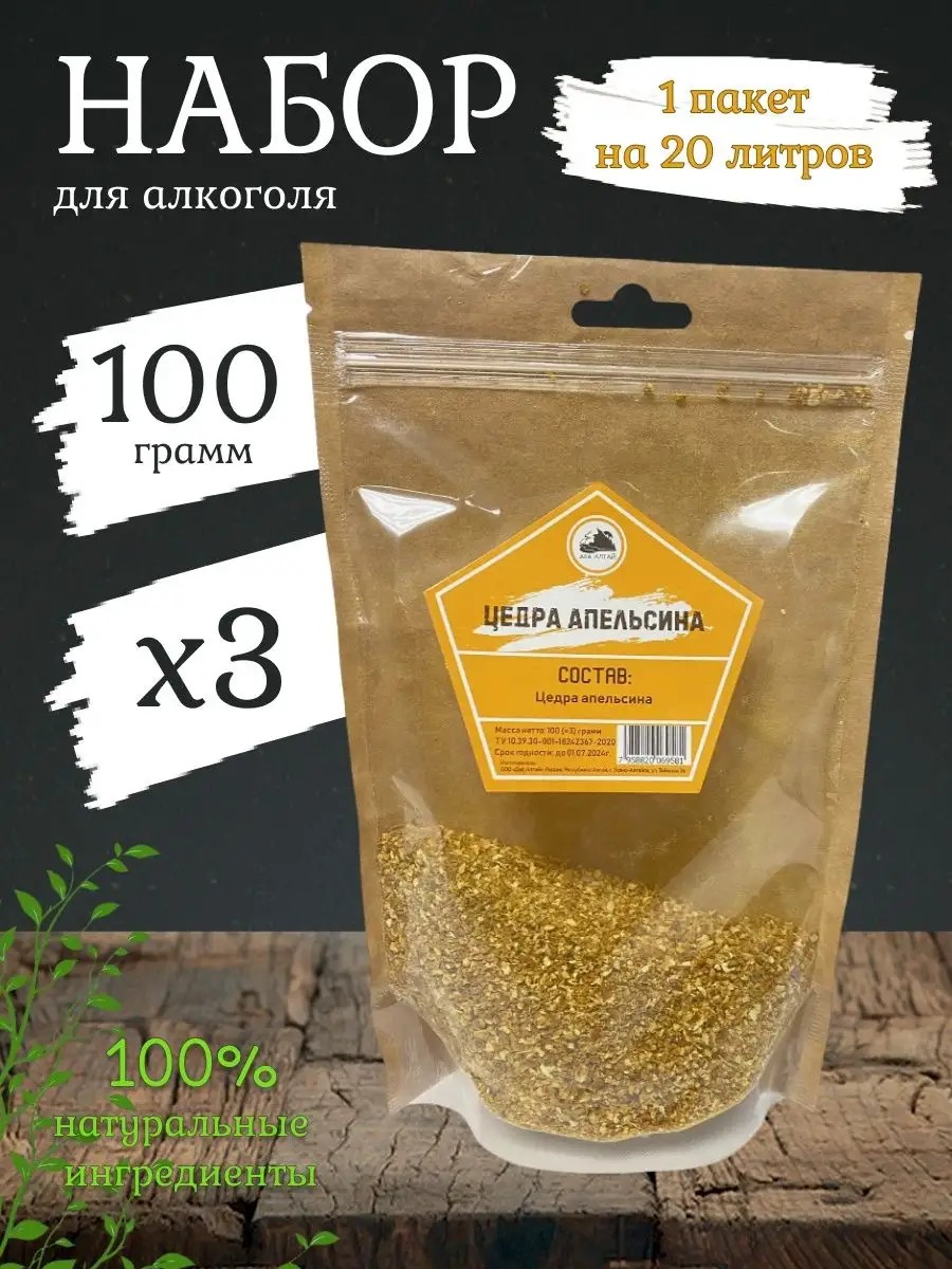 Orange Peel Herb and Spice Set for Moonshine or Vodka Infusion from Ded Altai. Ingredients: Orange peel. Free from industrial dust and impurities. Preparation: Add 1 dessert spoon (5 grams) to a 1-liter container of 40% moonshine or vodka and let steep for 7 days. Filter (strain) and pour into a container.