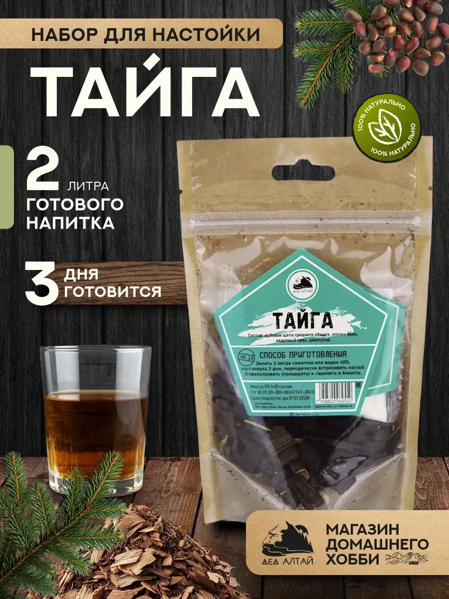 Набор для приготовления настойки "Тайга" "Дед Алтай" - это отличный подарок для любителей крепких напитков. В набор входят натуральные ингредиенты, собранные в экологически чистом Горном Алтае: дубовая щепа, иголки хвои, кедровый орех и декстроза. С этим набором вы сможете приготовить ароматную настойку, которая станет прекрасным дополнением к праздничному столу или просто приятным сюрпризом для друга. Набор упакован в подарочную коробку с этикеткой, что делает его идеальным вариантом для презента.