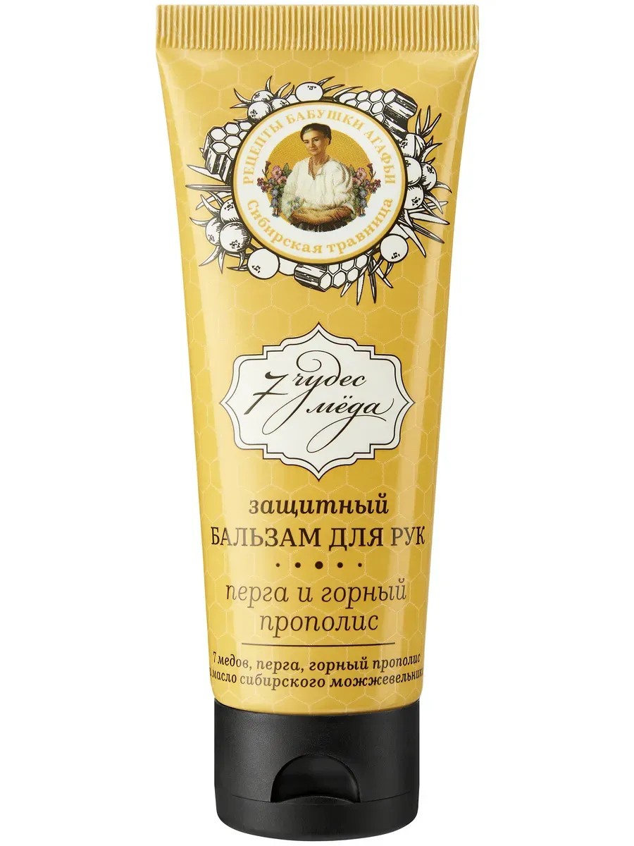 Рецепты Бабушки Агафьи Бальзам 7 чудес меда для рук, перга и горный прополис, 75 мл