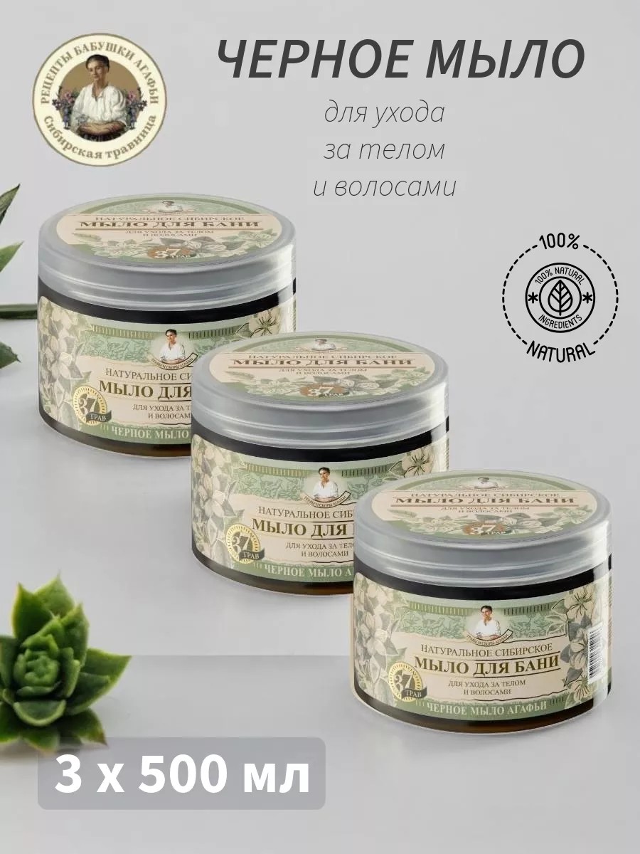 Рецепты бабушки Агафьи Мыло черное для волос и тела 3 шт