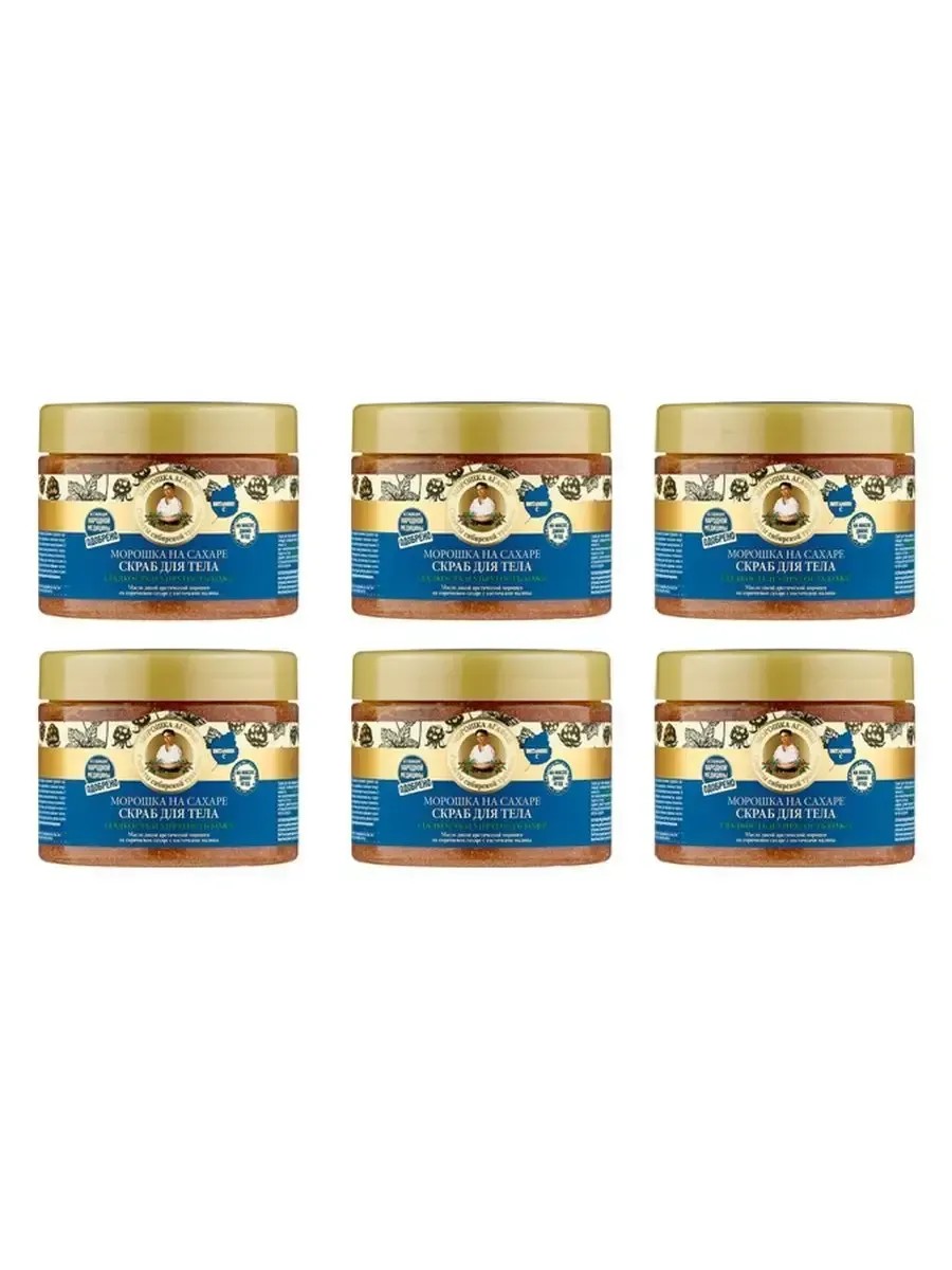 Рецепты бабушки Агафьи Скраб для тела морошка на сахаре 300 мл. Скраб для тела морошка на сахаре на основе масла диких ягод бережно очищает, возвращает коже упругость и эластичность, придает гладкость и нежность. Масло дикой арктической морошки, обогащенное антиоксидантами и микроэлементами, стимулирует обновление клеток, придавая коже молодость и тонус. Косточки малины и коричневый сахар эффективно отшелушивают, делают кожу ровной и гладкой. Сок сибирского барбариса содержит в большом количестве витамин С и А.Н.А.-кислоты, делает кожу более подтянутой и упругой.
