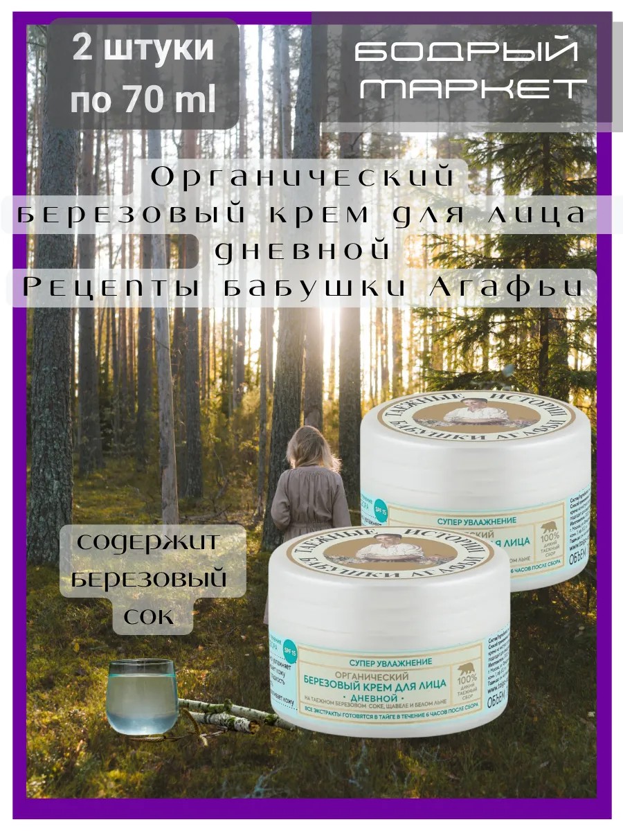 Крем для лица дневной Березовый органический Рецепты бабушки Агафьи.