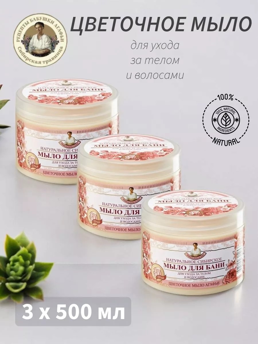 Рецепты бабушки Агафьи Мыло цветочное для волос и тела 3 шт
