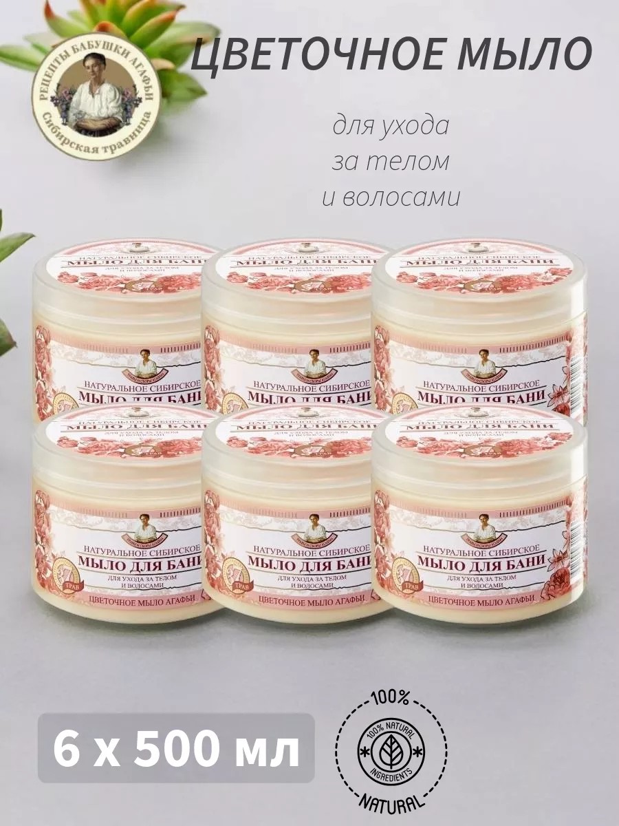 Рецепты бабушки Агафьи Мыло цветочное для волос и тела 6 шт