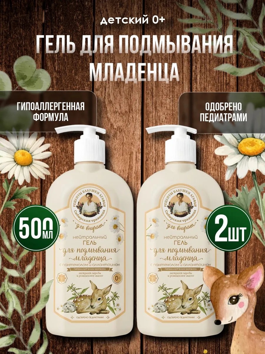 Рецепты бабушки Агафьи Для внучат 0+ Гель нейтральный с пантенолом и аллантоином для подмывания младенца 500 мл* 2 штуки.