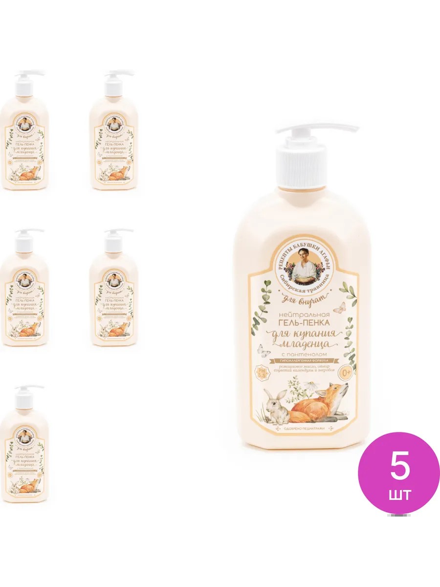 Гель-пенка для купания младенца с пантенолом 500мл, 5 шт