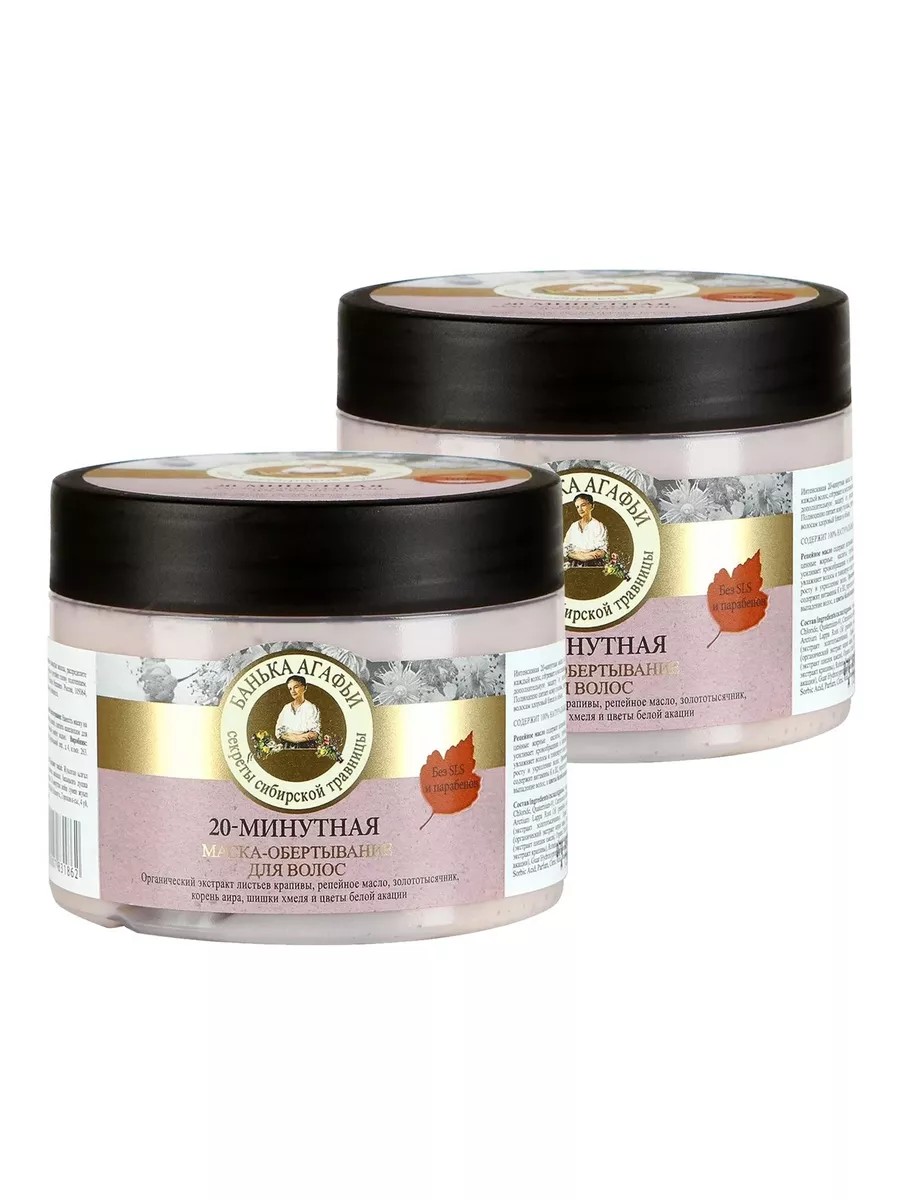 | Полное наименование товара | Банька Агафьи Маска-обертывание для волос 20-минутная 300мл 2шт |