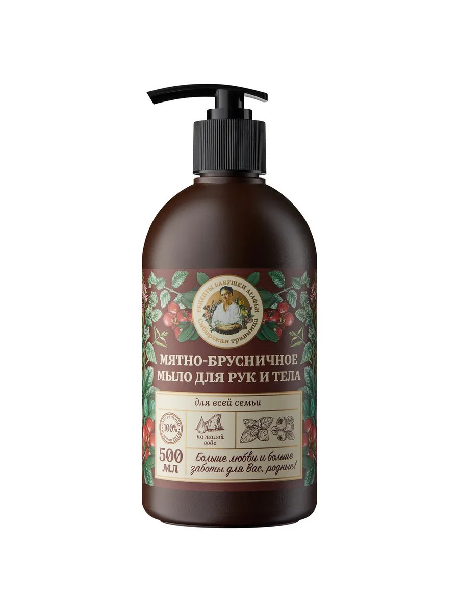 Рецепты Бабушки Агафьи Мятно-брусничное мыло для рук и тела Для всей семьи 500 мл