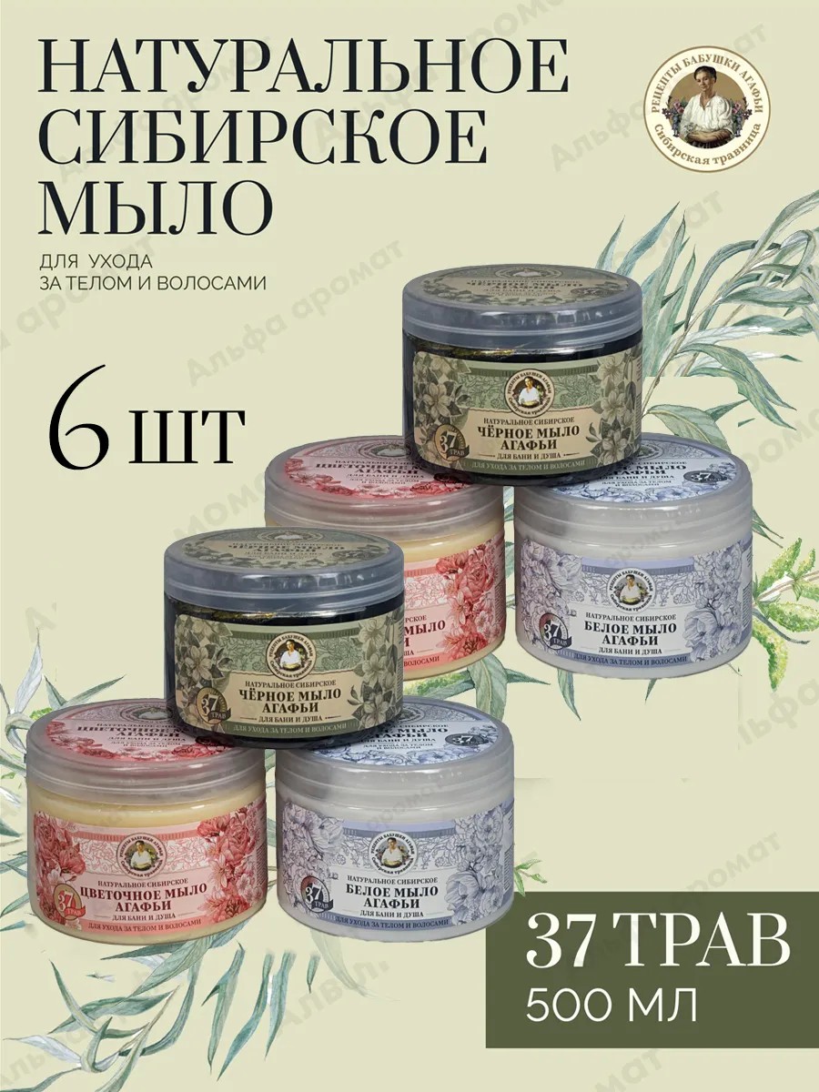 Рецепты Бабушки Агафьи Набор Мыло для бани уход за телом и волосами 6 шт по 500мл