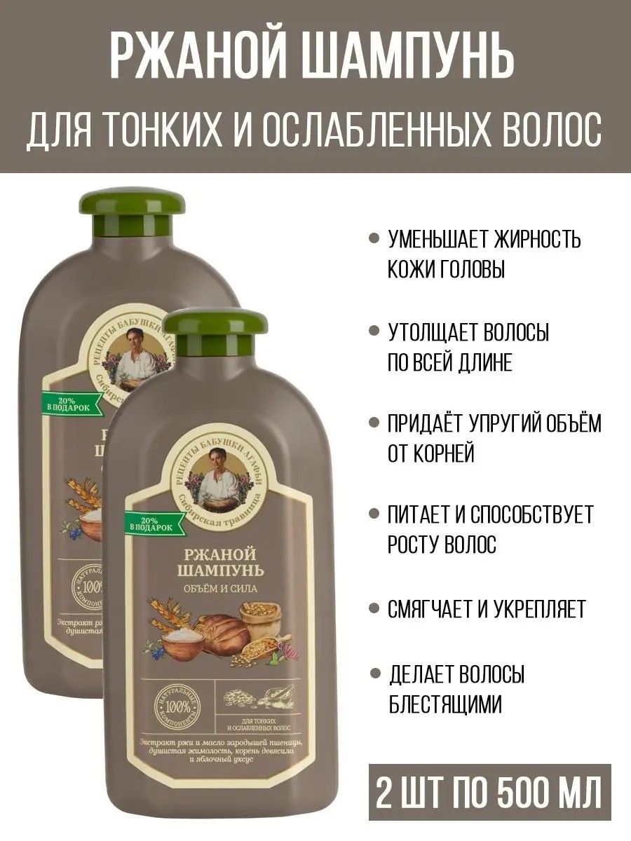 Рецепты Бабушки Агафьи Шампунь для объёма и силы волос Ржаной 500мл, 2шт