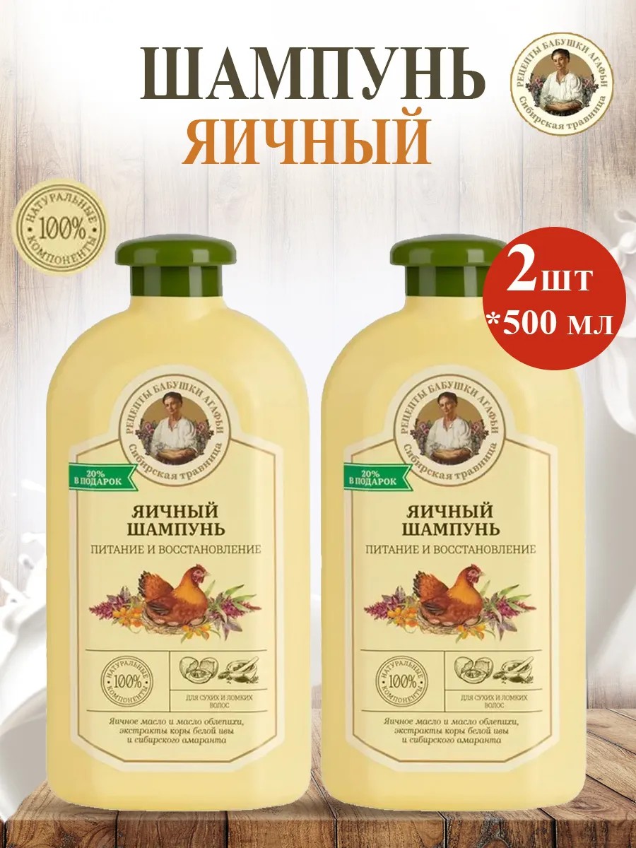 Рецепты Бабушки Агафьи Шампунь питание и восстановление волос Яичный 500мл, 2шт