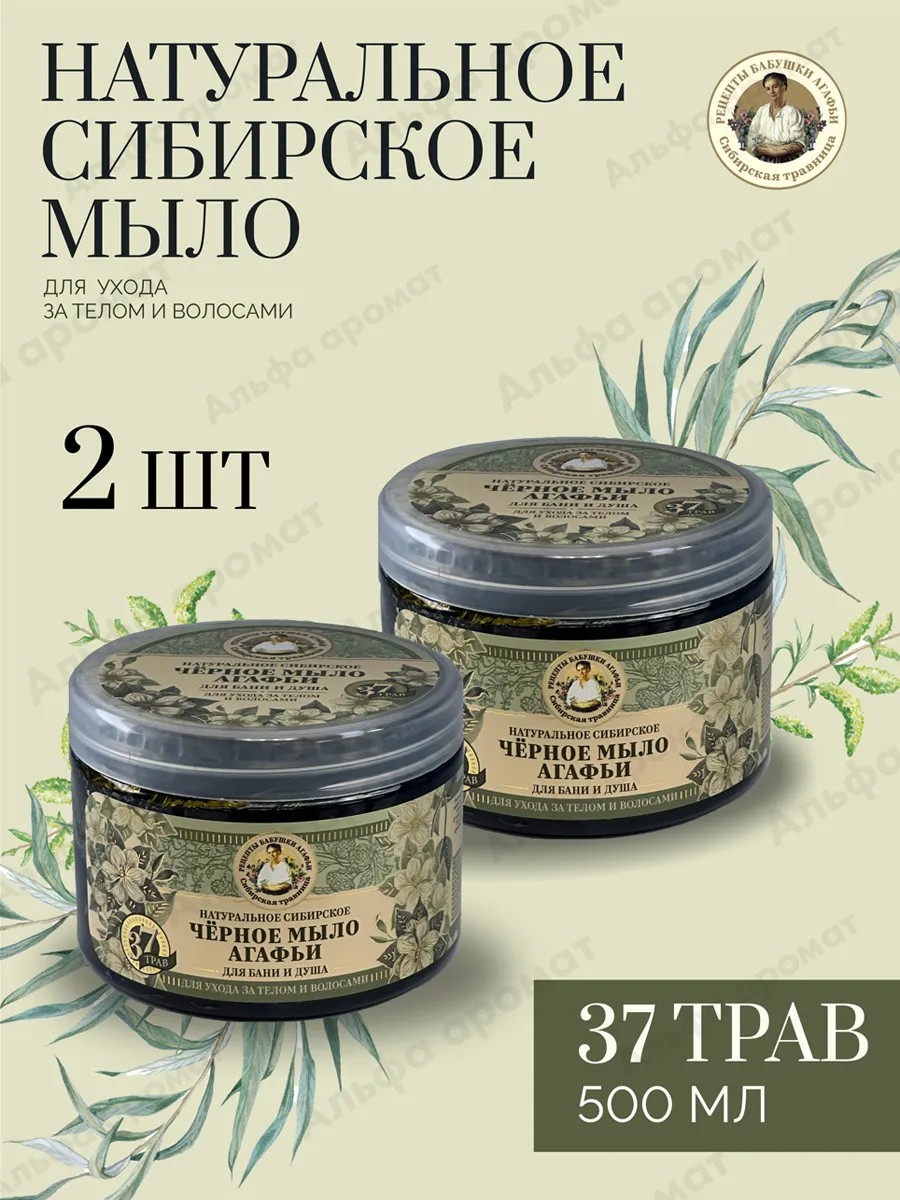 Рецепты Бабушки Агафьи Мыло для бани Черное Травы и сборы Агафьи 500 мл 2 штуки