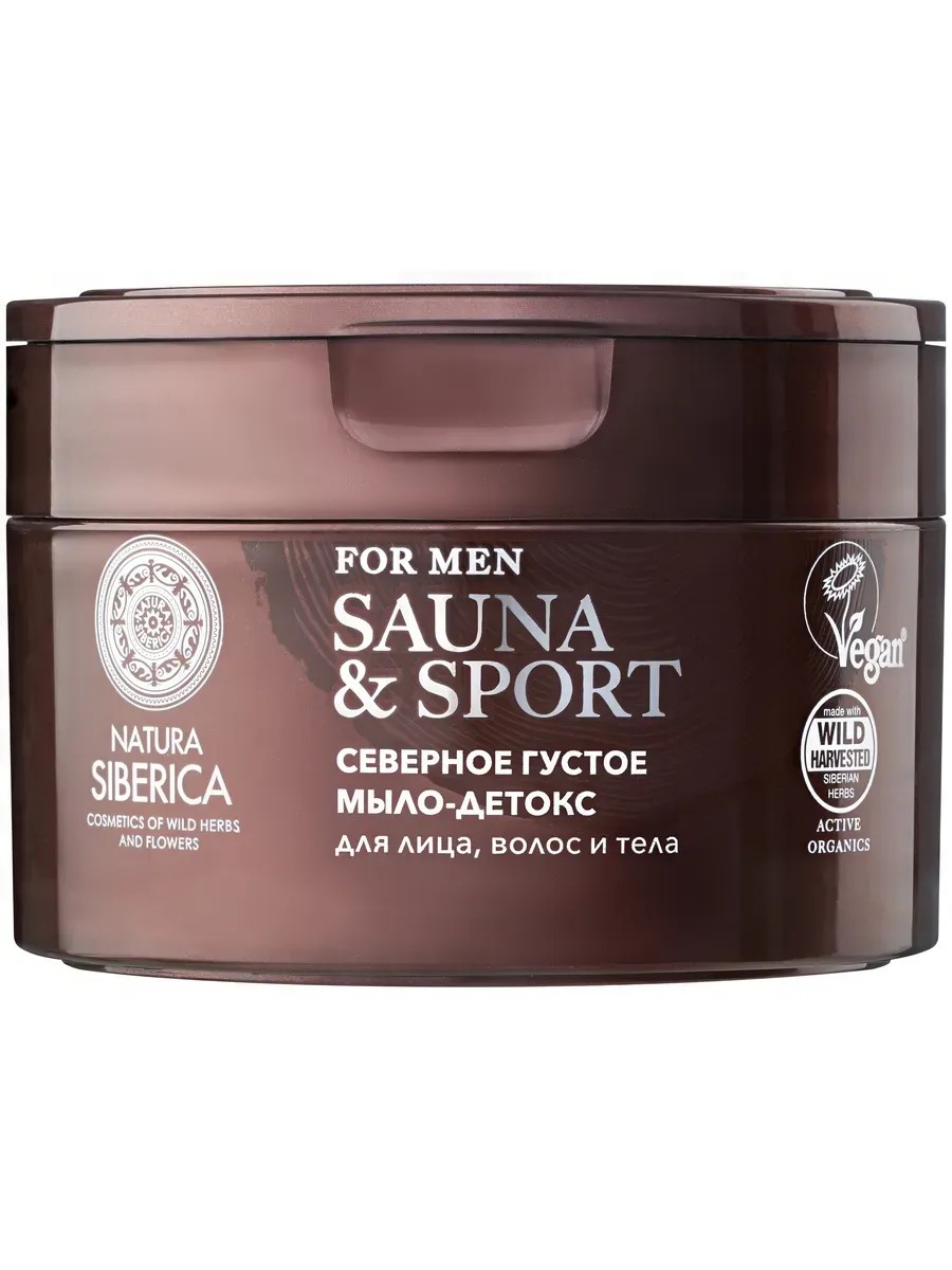 Мыло-детокс Natura Siberica Sauna Sodium Coco-Sulfate, Cocamidopropyl Betaine, Coco-Glucoside, Lauryl Glucoside, Sodium Chloride, Pineamidopropyl Betaine PS (производное кедрового масла), Hippophae Rhamnoidesamidopropyl Betaine HR (производное масла алтайской облепихи), Benzyl Alcohol, Ethylhexylglycerin, Parfum, Benzyl Benzoate. * Органические ингредиенты. WH Органические экстракты дикорастущих растений Сибири. PS Производное масла сибирского кедра. HR Производное масла алтайской облепихи. Нанесите мыло на влажные волосы, кожу лица и тела, немного помассируйте, смойте водой.