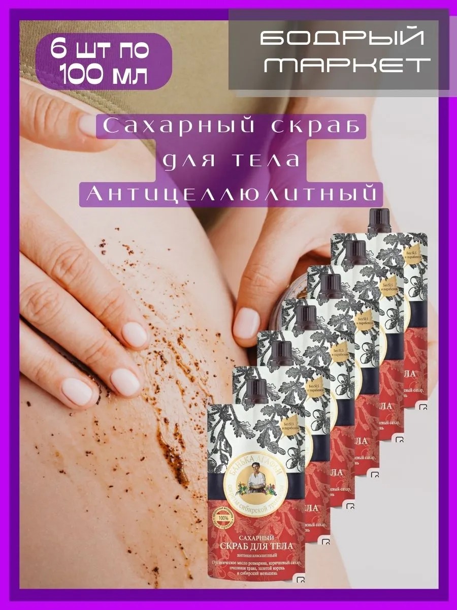 Набор (комплект) - 6 штуки. Сахарный скраб для тела — ваш надежный помощник в борьбе с целлюлитом и для достижения гладкой, упругой кожи! Этот универсальный скраб не только очищает и раскрывает поры, но и эффективно выводит токсины, возвращая коже её здоровье и красоту.