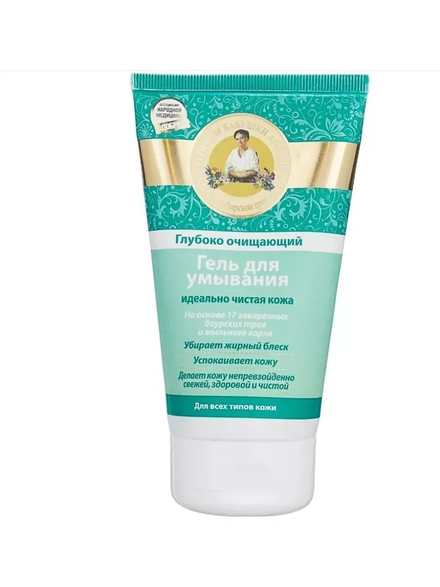 Рецепты бабушки Агафьи Гель для умывания глубоко очищающий, 150 мл. Непередаваемое ощущение чистоты. Гель для умывания по рецептам сибирской травницы Агафьи глубоко очищает кожу и улучшает клеточное дыхание. Мыльный корень помогает избавиться от жирного блеска, делает кожу ровной и матовой. Отвар из специально подобранных 17 даурских трав, содержащих сапонины, фитонциды и дубильные вещества, глубоко очищает кожу, обладает мощным успокаивающим и антисептическим действиями. Кожа становится свежей, здоровой и чистой.