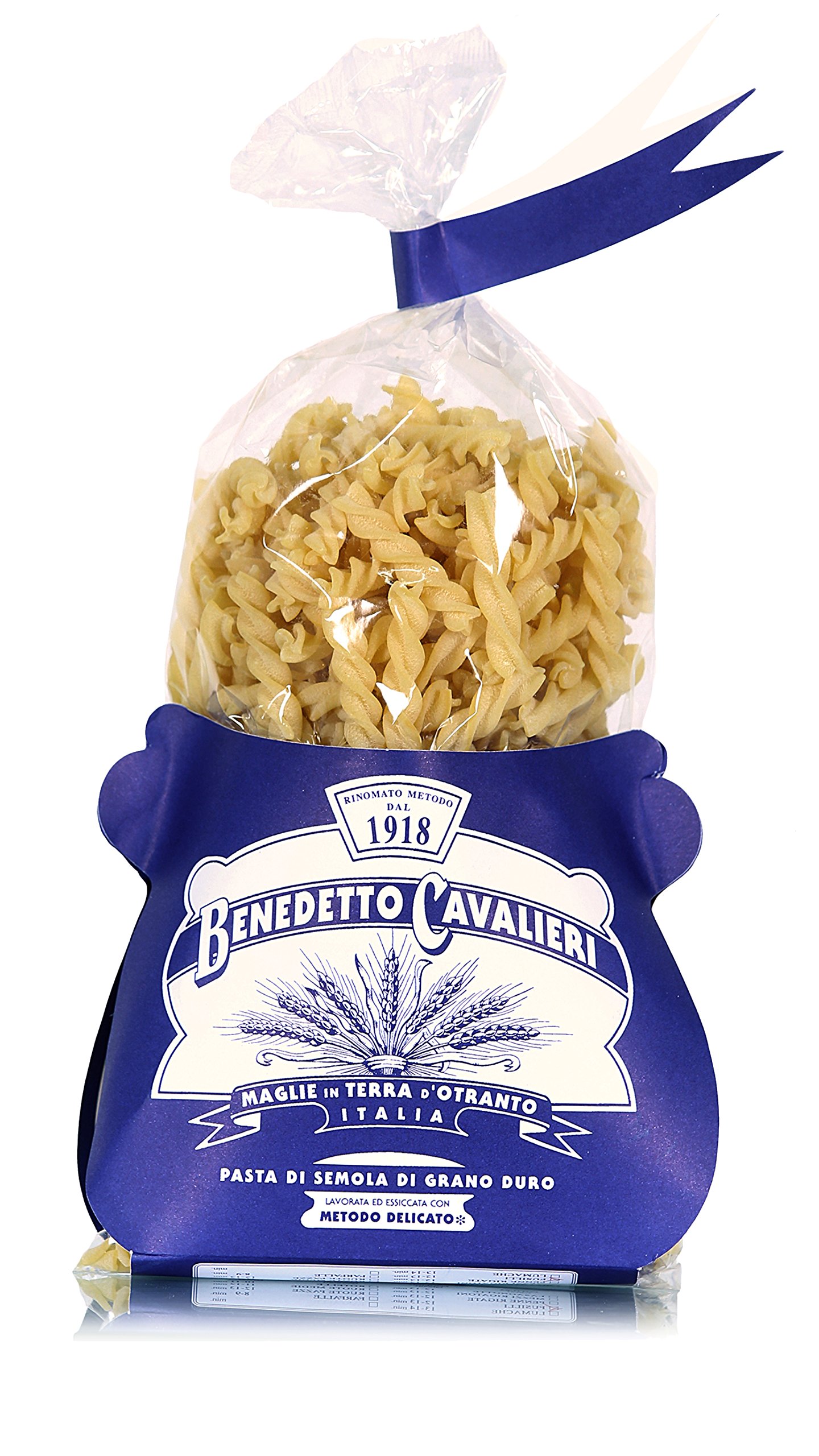 This type of pasta is produced from durum wheat semolina in the town of Maglie in southern Italy's Salento region. Fusilli from the renowned Pastificio Benedetto Cavalieri are produced using a method described as "delicate," involving prolonged kneading and pressing, shaping, and slow drying at low temperatures. All these characteristics give the pasta from this century-old Apulian company an exceptional flavor and texture, while preserving all the valuable nutritional benefits of the high-quality wheat. Pasta from Pastificio Benedetto Cavalieri is highly regarded worldwide and featured on the menus of many of the world's most prestigious restaurants, thanks to the passion, attention to detail, and continuous pursuit of the highest quality that has been passed down through the Cavalieri family from generation to generation. WineSpectator celebrated this artisanal pasta as Italy's top choice, praising its "excellent grain flavor and delightful chewiness." INGREDIENTS Durum wheat semolina INSTRUCTIONS Bring water to a boil, add the pasta and coarse salt, and stir constantly. Cooking time is between 12 and 13 minutes. See more